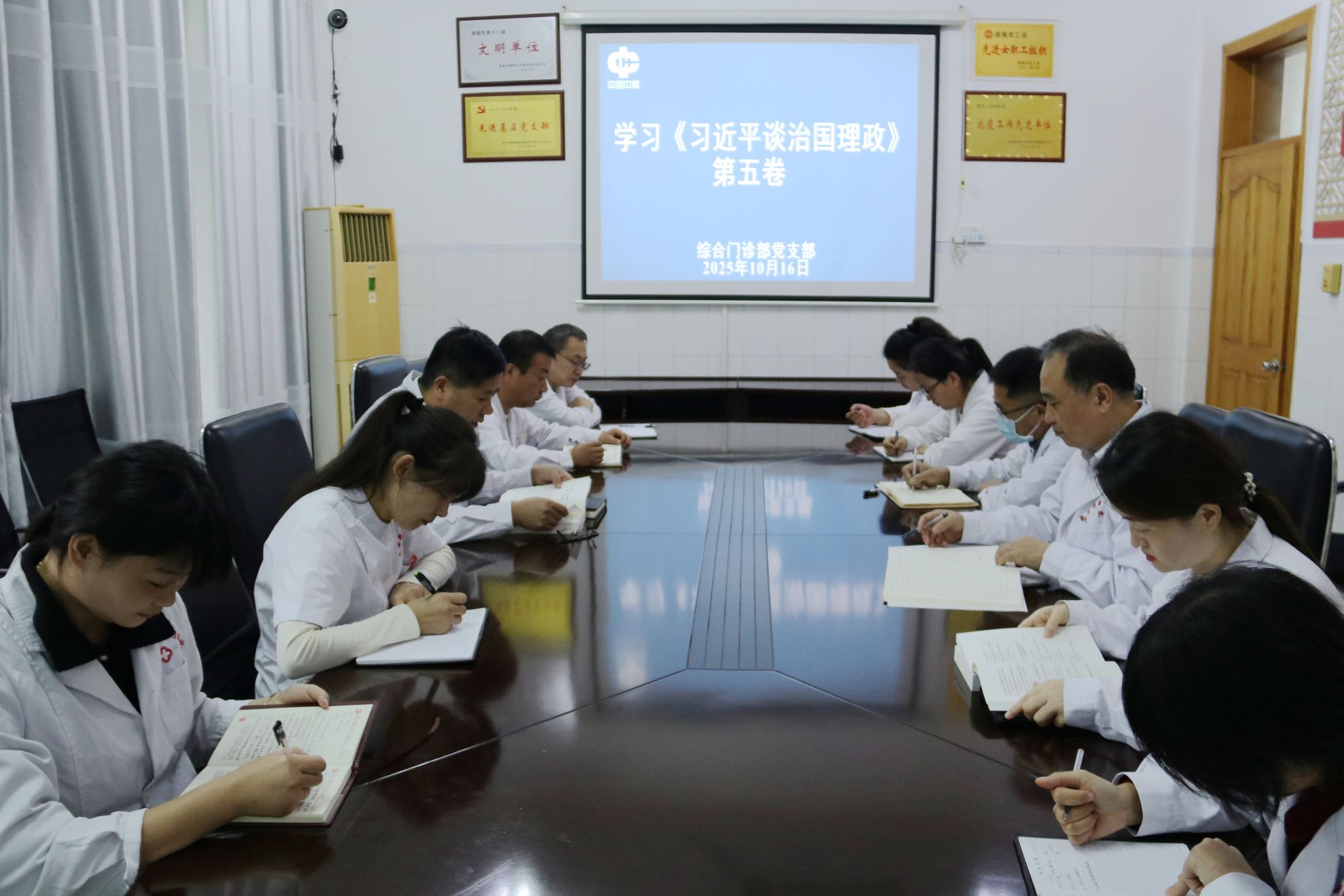 10月16日,综合门诊部党支部组织开展《习近平谈治国理政》第五卷专题学习主题党日活动,全体党员及入党积极分子参加。