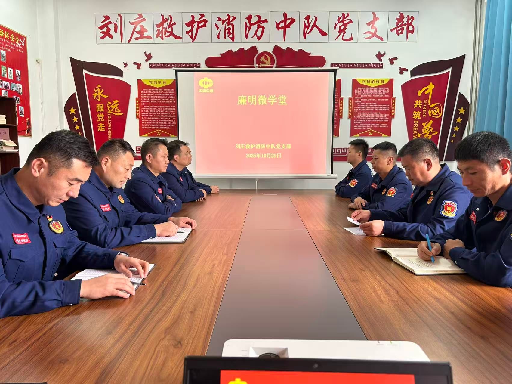 为持续深化党风廉政建设,切实筑牢全体指战员拒腐防变的思想防线,10月29日,刘庄救护消防中队党支部精准发力,组织开展“廉明微学堂”专题教育活动,以小课堂传递大廉洁,推动廉洁文化深植人心、落地生根。