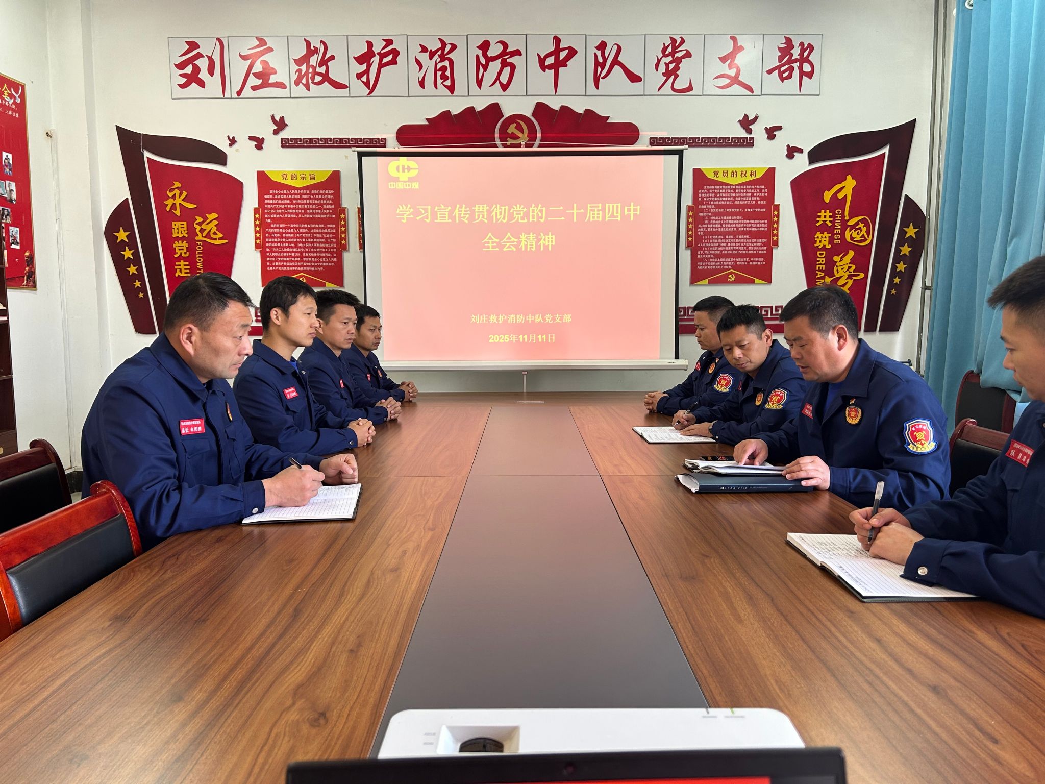 党的二十届四中全会擘画了全面建设社会主义现代化国家的宏伟蓝图,其中“坚持党的全面领导”“健全基层治理体系”“扎实推进乡村全面振兴”等重要部署,为基层工作提供了根本遵循。11月11日,刘庄救护消防中队党支部迅速行动,以“学深悟透、宣传到位、落地见效”为目标,让全会精神在支部落地生根、见行见效,凝聚起奋进“十五五”的强大合力。