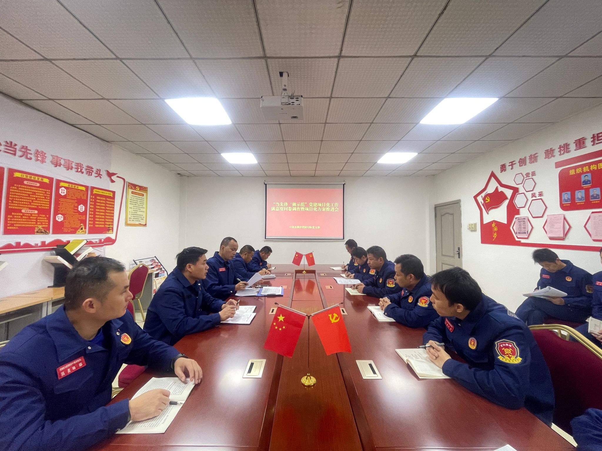 为深入推进党建与中心工作深度融合,充分发挥党员先锋模范作用,12月12日,口孜东救护消防中队党支部组织开展“当先锋、做示范”党建项目化工作满意度问卷调查,并召开项目化工作方案推进会。
