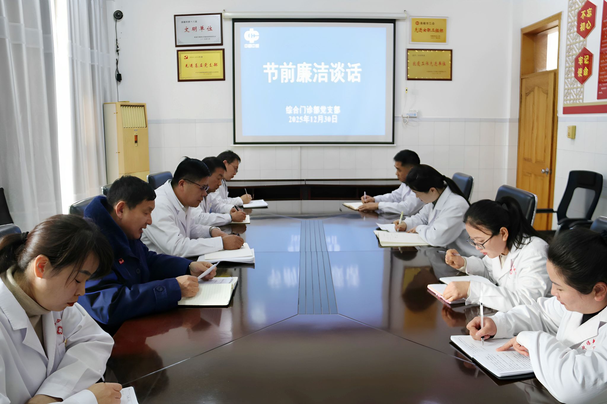 为深入落实中央八项规定及其实施细则精神,筑牢节日廉洁防线,12月30日,联系点领导新集救护队党委副书记、纪委书记程业帮深入综合门诊部党支部,与全体党员及入党积极分子开展元旦、春节节前廉洁谈话。