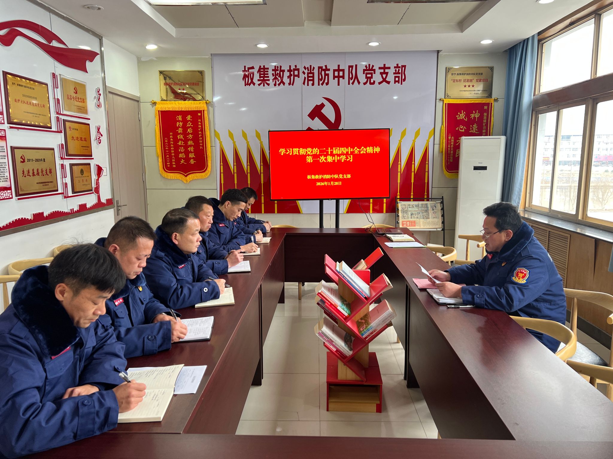 1月30日,板集救护消防中队党支部组织全体党员干部开展学习贯彻党的二十届四中全会精神第一次集中学习。新集救护队副大队长高勤福同志深入联系点党支部,以此次集中学习为载体,为全体党员上专题党课。