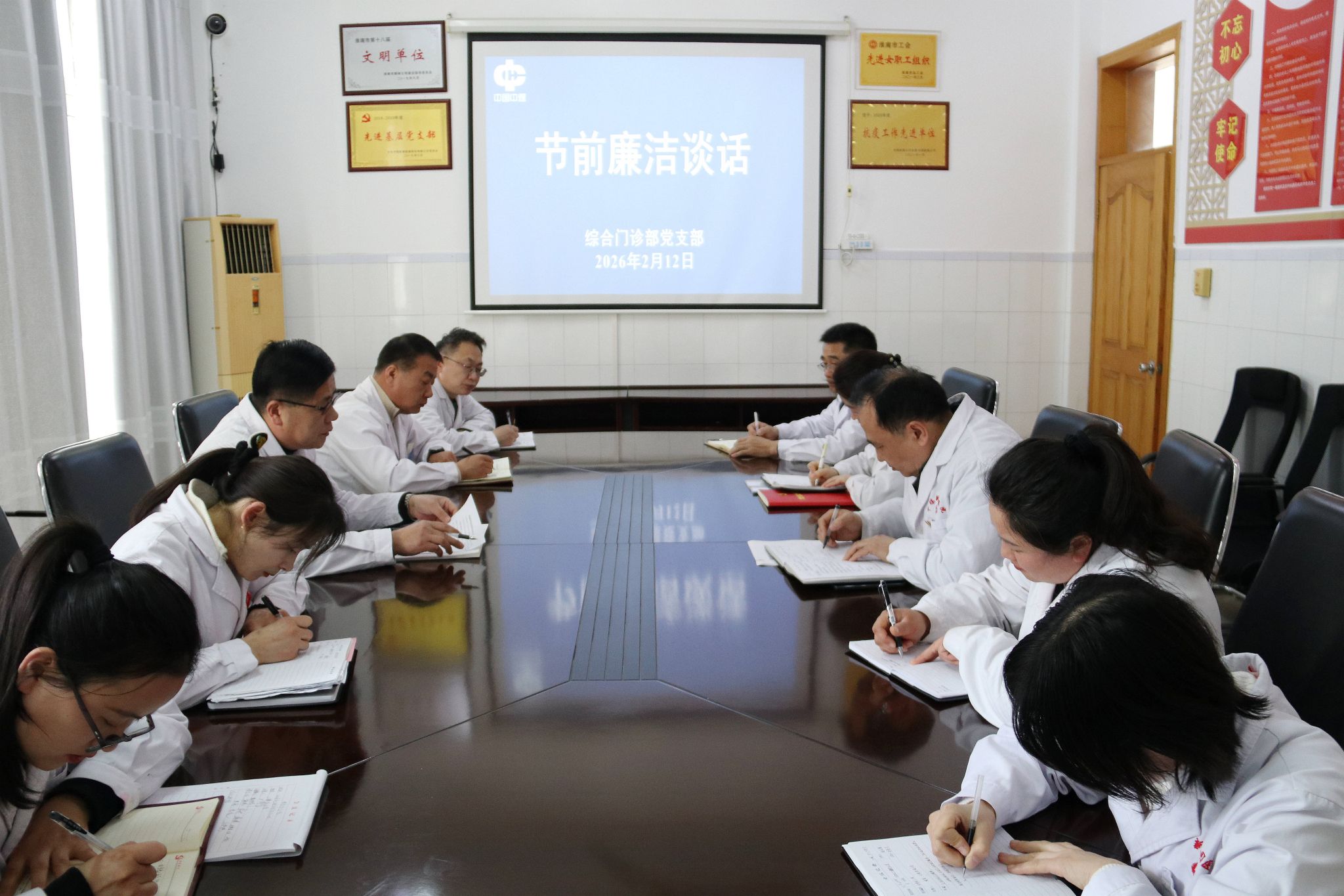 春节将至,为持续深入贯彻中央八项规定精神学习教育,坚决防止“四风”问题反弹回潮,营造风清气正的节日氛围,2月12日,综合门诊部党支部组织全体党员及入党积极分子开展节前廉洁谈话。
