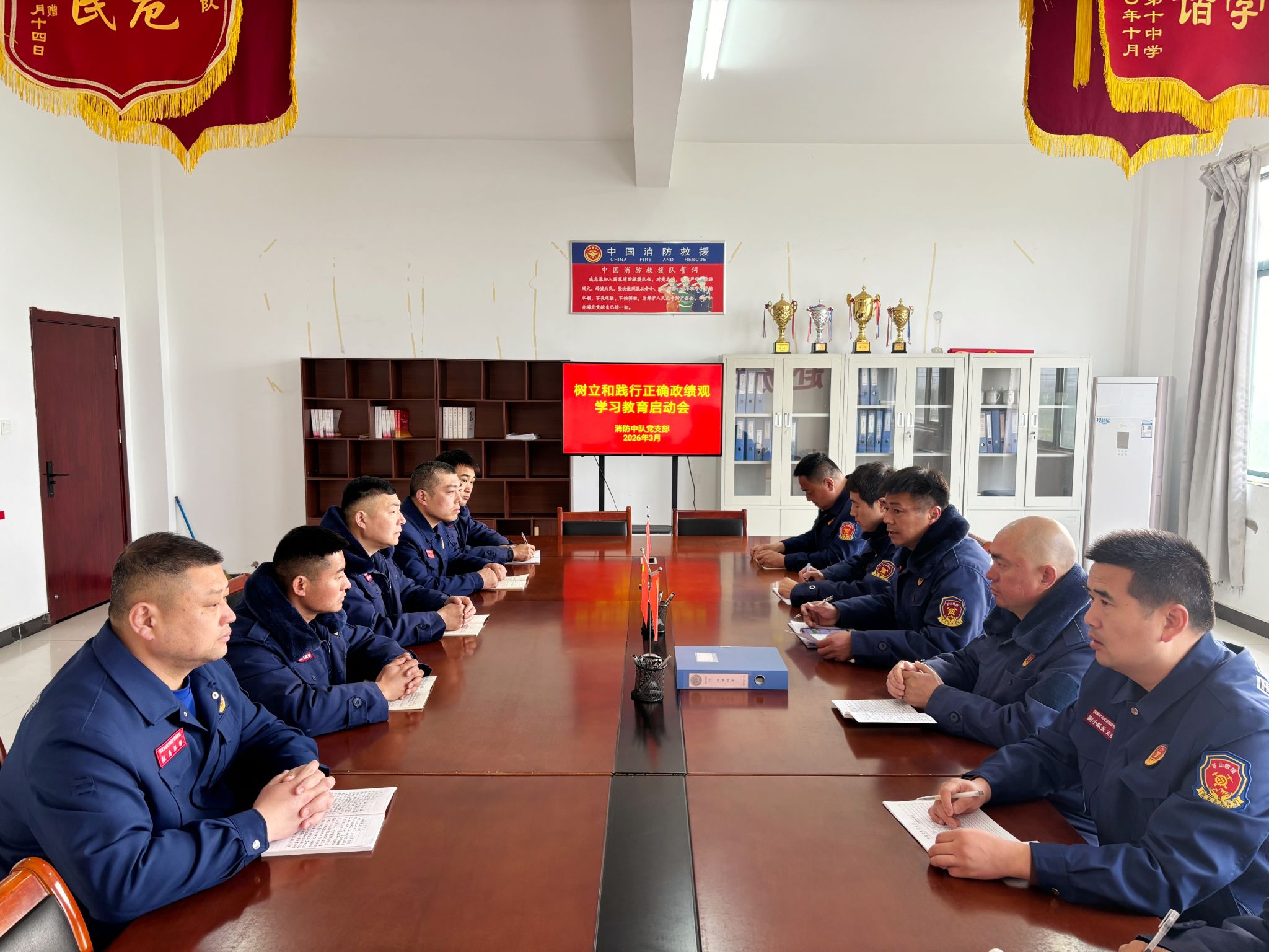 近日,新集救护队消防中队党支部召开树立和践行正确政绩观学习教育启动会,全面部署支部学习教育各项工作,以正确政绩观为引领,吹响推动应急救援事业高质量发展的冲锋号。