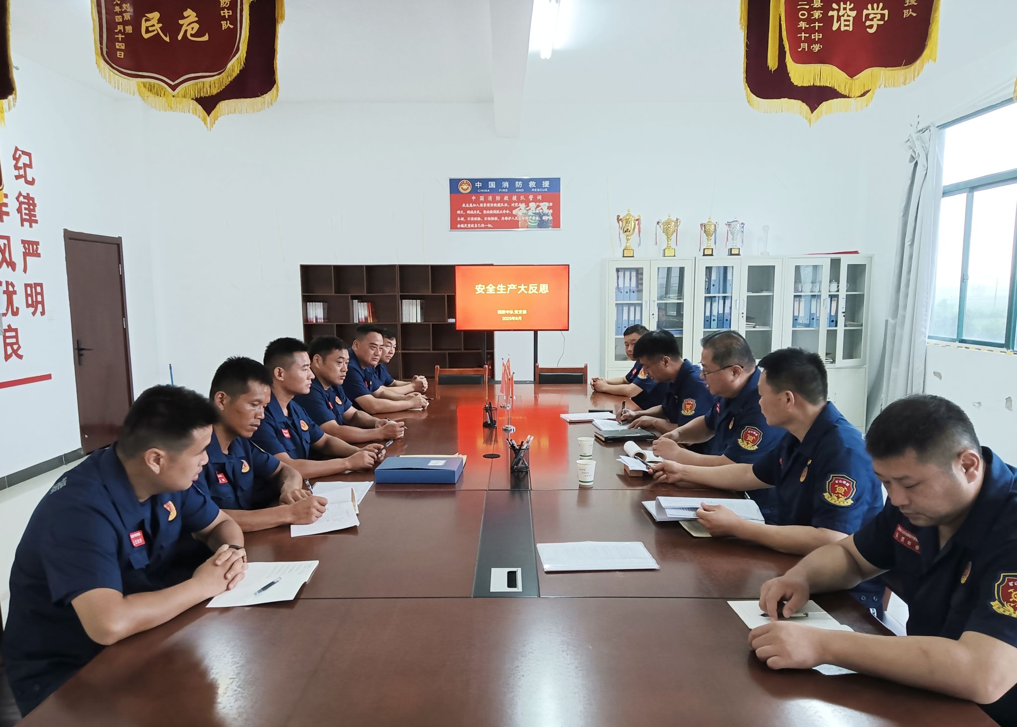 会上,面对复杂多变的安全形势,中队负责人通过领学近期行业内典型事故案例,以详实数据和触目惊心的画面直观展现忽视安全的严重后果,为全体人员敲响思想警钟。随后,指战员们围绕“如何从自身做起守牢安全底线”“怎样将安全规范落实到每一次出警任务中”等核心议题展开深入讨论。大家结合自身岗位实际,既有对过往经验不足的深刻反思,也有对未来工作的务实规划,现场讨论热烈,思想火花不断碰撞。