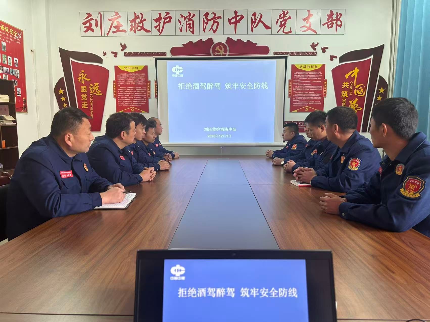 为深入贯彻落实全面从严治党和安全生产相关要求,强化全体指战员纪律意识、法治意识和安全意识,切实防范酒驾醉驾违纪违法行为,12月1日,刘庄救护消防中队以“拒绝酒驾醉驾 筑牢安全防线”为主题,开展酒驾醉驾专项宣传教育活动,为队伍建设和应急救援工作筑牢纪律安全屏障。