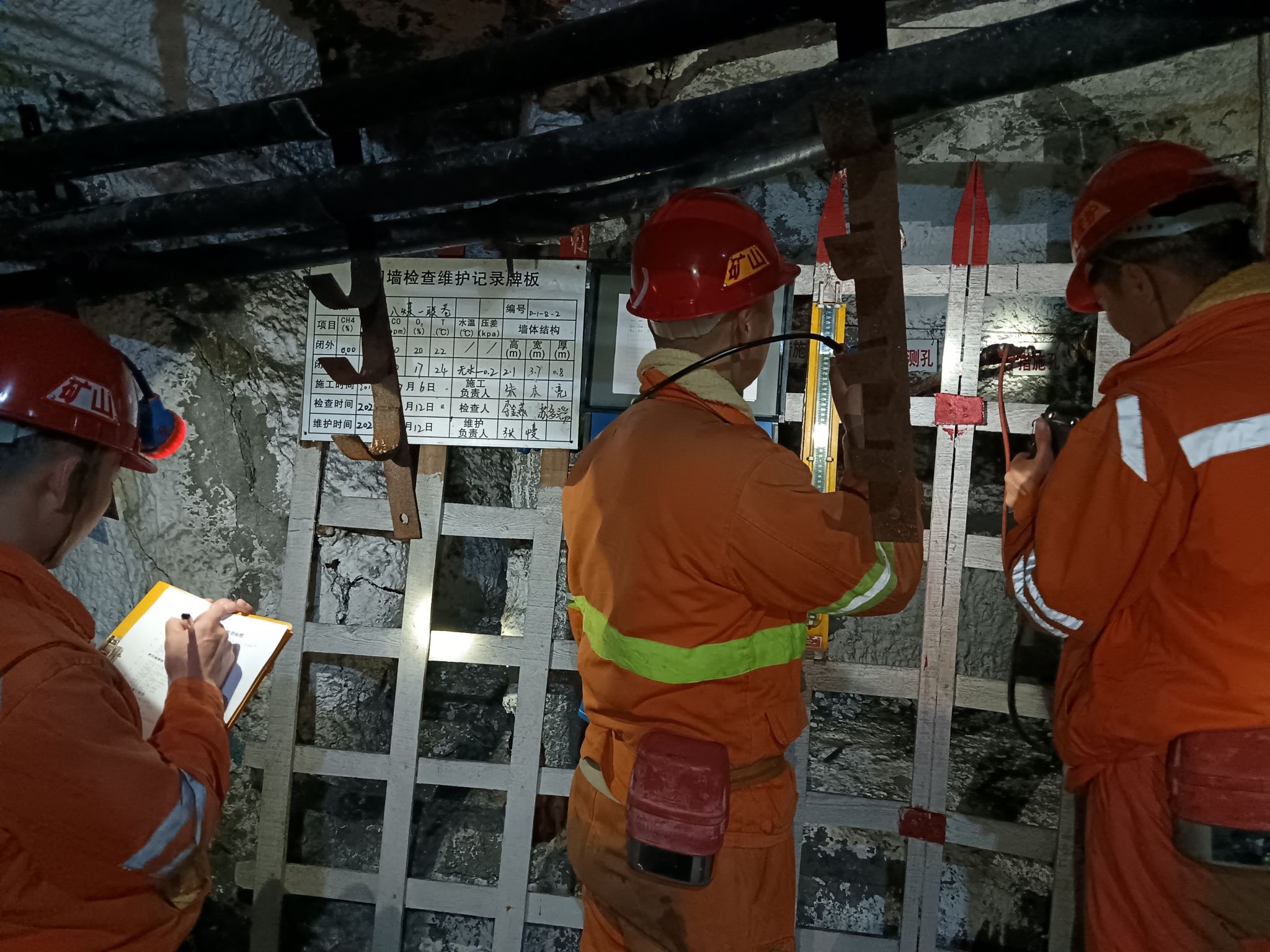 在检查过程中,检查人员严格按照流程操作。他们首先对密闭墙体进行细致检查,查看是否存在裂缝、破损等问题,对于发现的细微隐患,及时做好标记并记录。接着,使用气体检测仪器,对密闭附近的气体成分进行精确检测,包括瓦斯、一氧化碳、二氧化碳等关键指标,不放过任何一个可能影响安全生产的因素。同时,对密闭周边巷道的支护情况进行评估,查看有无片帮、冒顶等危险迹象。