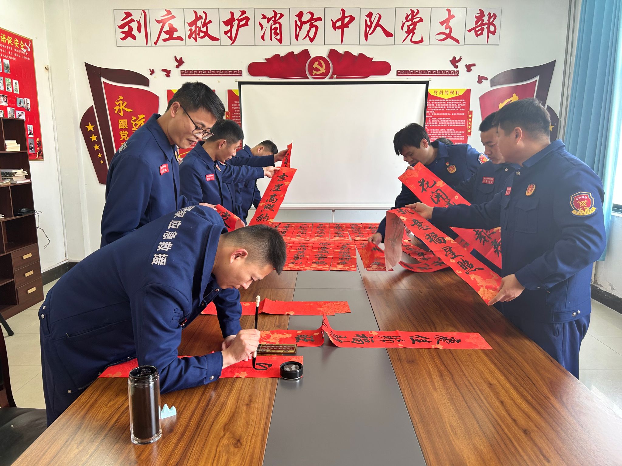 墨香润红门,初心永不忘。下一步,刘庄救护消防中队党支部将扎实开展各类暖警惠警和文化育警活动,不断增强队伍的凝聚力、向心力和战斗力,激励全体指战员在新的一年里,踔厉奋发、勇毅前行,为中煤新集高质量发展筑牢坚实的安全屏障,以优异成绩迎接2026年马年新春的到来。