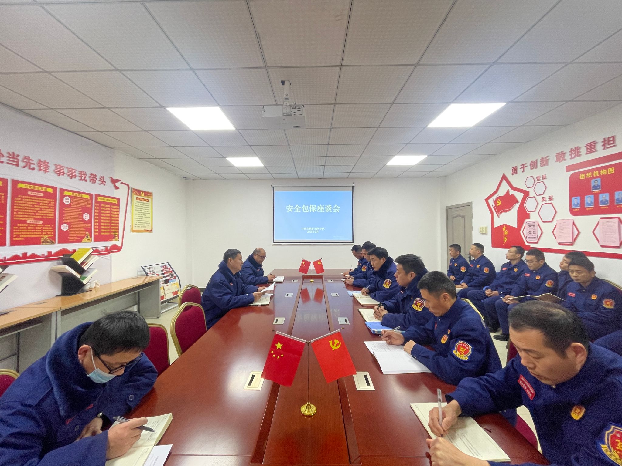 为切实做好春节后复工复产安全防范工作,2月25日,春节假期结束首个工作日,新集救护队纪委书记程业帮深入口孜东救护消防中队,组织召开安全包保座谈会,为新一年安全救援工作谋篇布局、凝心聚力。