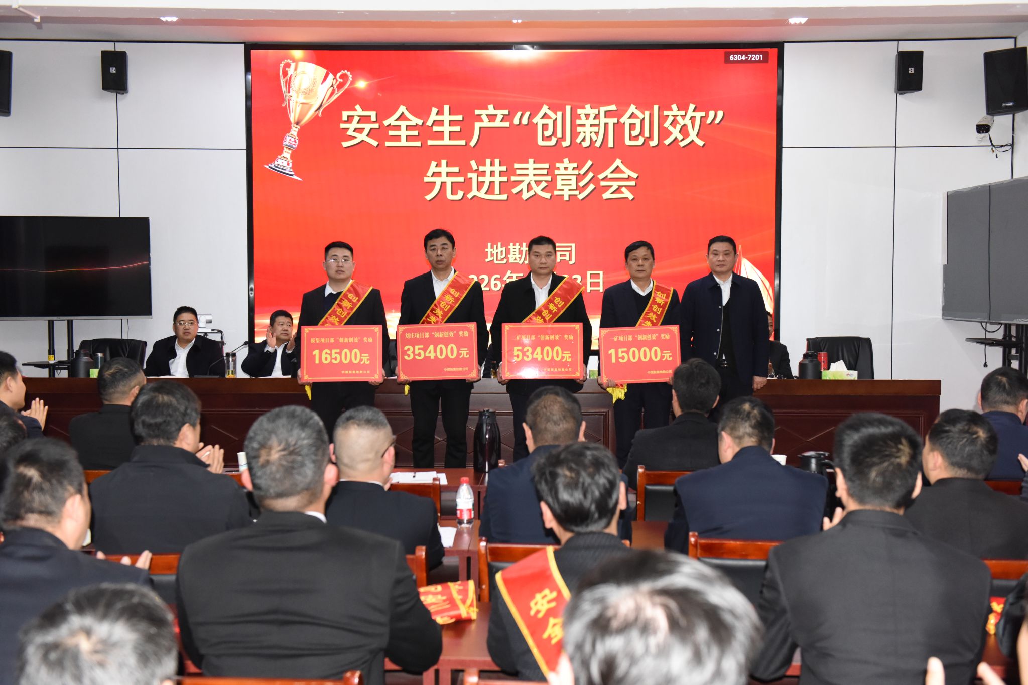 2月23日,地勘公司在一楼会议室召开1月份创新创效先进评选表彰会,洪训胜主持会议并为获奖代表颁奖。主管技术员及以上人员、各项目部机长、钻机司机等60余人参会。