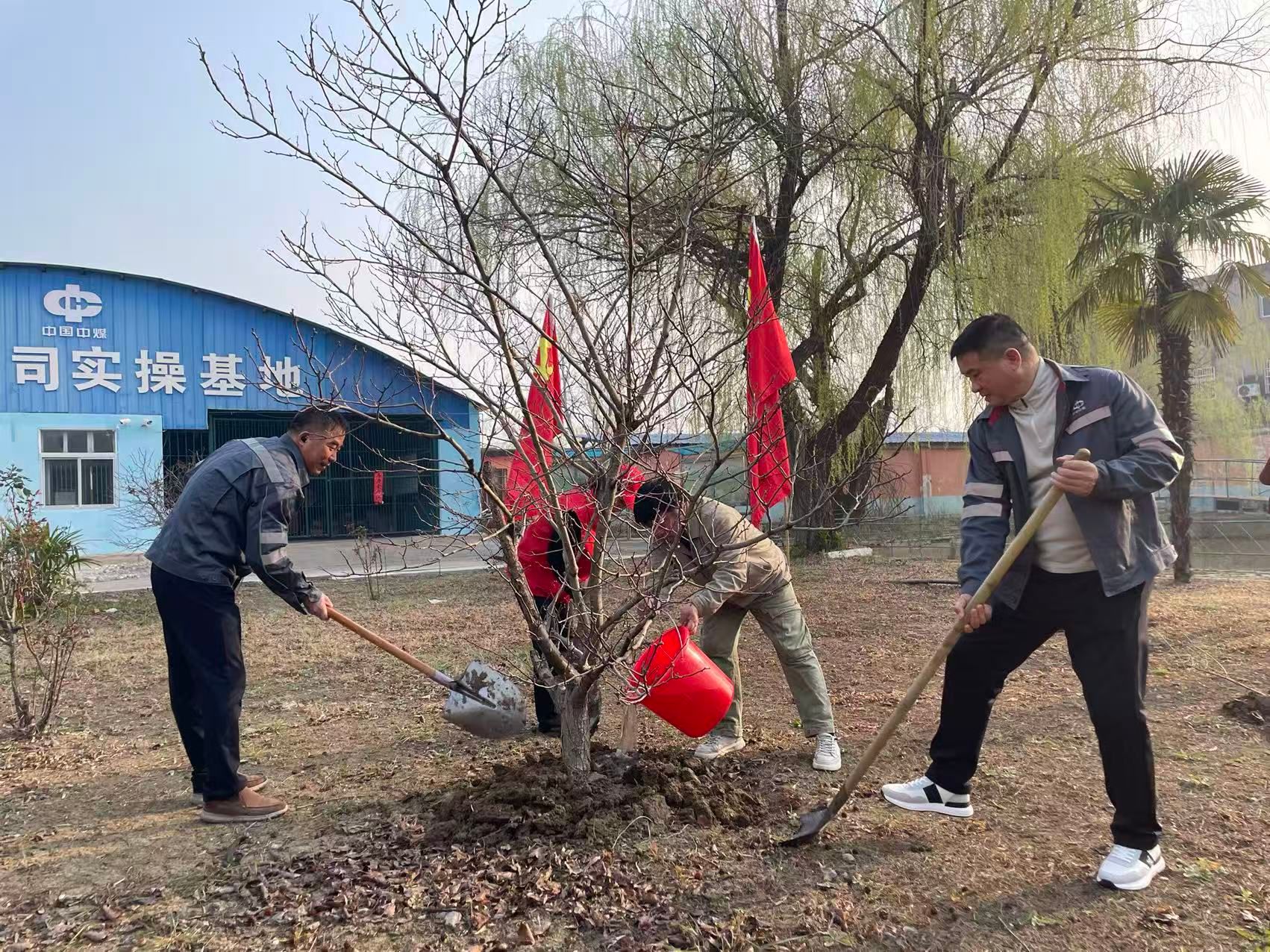 活动现场党旗飘扬、士气高昂,领导班子带头垂范,与党员干部职工、青年志愿者代表并肩协作。大家严格遵循植树规范,分工有序、井然有序,挥锹铲土、扶苗填坑、培土压实、浇水定苗,每一个环节都一丝不苟,确保“栽一棵、活一棵、成一片”。经过数小时辛勤劳作,一排排树苗迎风挺立,为春日大地增添盎然绿意,也种下了生态优先、绿色发展的希望。