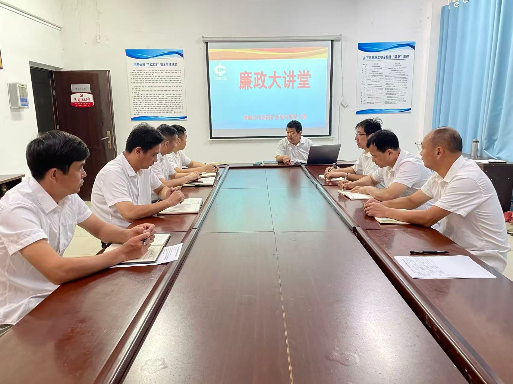 为深入推进党风廉政建设,强化党员干部的廉洁自律意识,9月18日,地勘公司党建联系点领导到阜阳矿业项目部党支部开展“廉政大讲堂”学习教育活动,支部全体党员参加。