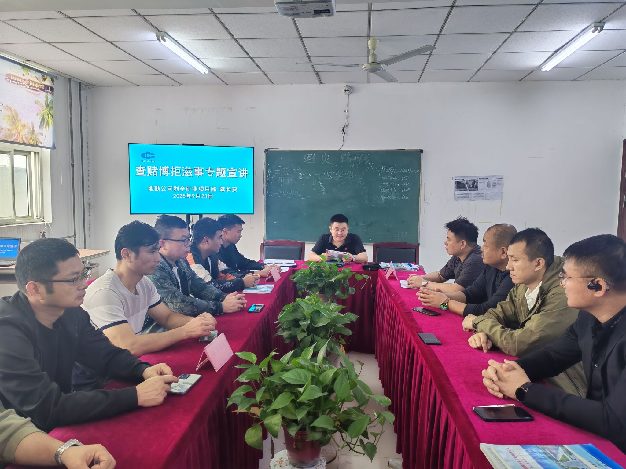 为切实防范赌博及滋事行为对安全生产稳定的冲击,9月23日,利辛矿业项目部开展以“查赌博陋习、拒滋事冲突”专题培训,通过案例警示、法规解读、互动承诺等形式,为职工敲响警钟、筑牢思想防线。