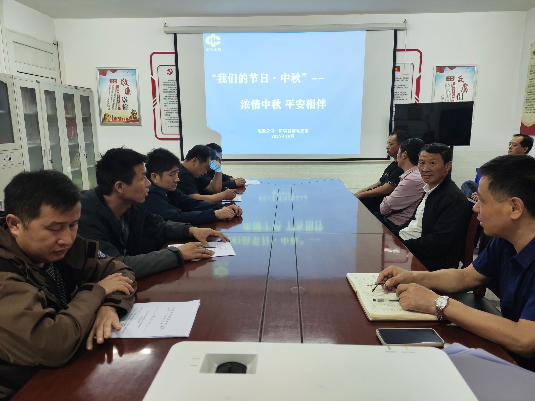 又是一年中秋佳节,为进一步弘扬中华优秀传统文化,增进员工之间的情感交流,10月2日,地勘公司一矿项目部党支部开展“浓情中秋 平安相伴”活动。