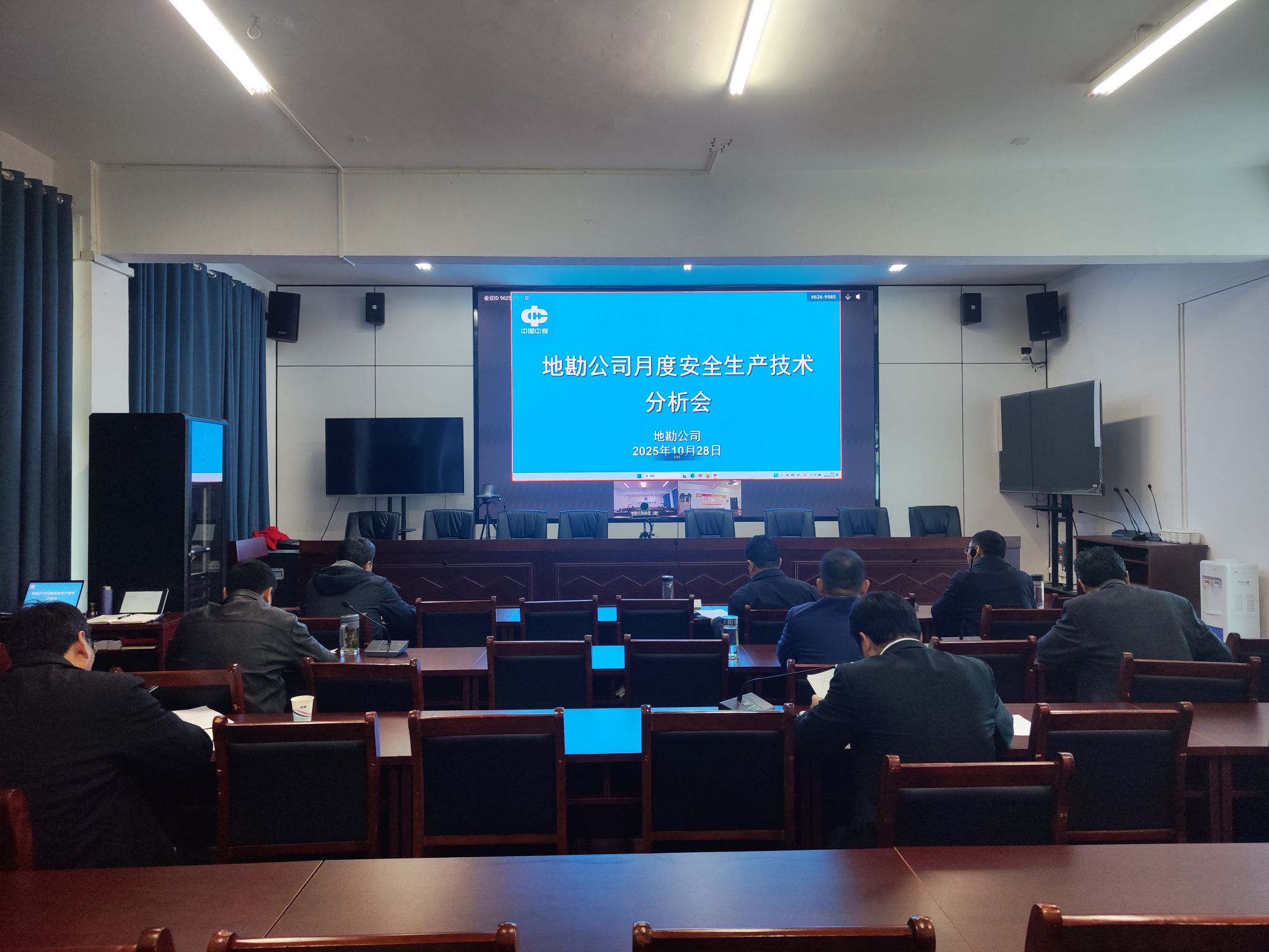 10月28日,地勘公司召开月度安全生产技术分析会。会议由总工程师陈斌主持,公司分管安全、生产、技术等工作的副总级以上领导,以及生产技术办、安全质量办、经营办和各项目部的管技人员参加了会议,共同分析总结当月工作开展情况,并部署下一步工作安排。