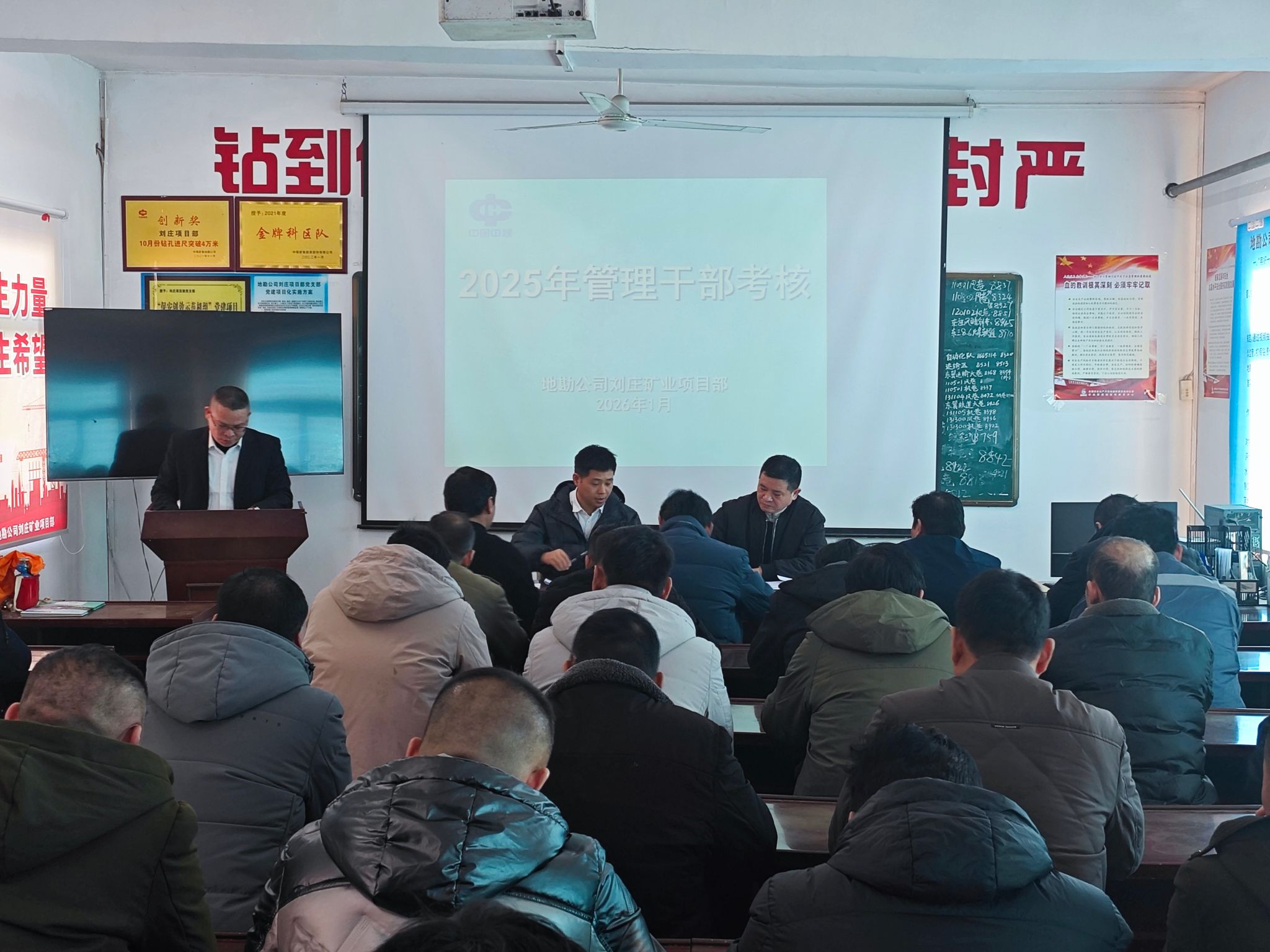 1月15日,地勘公司管理干部考核工作组到刘庄矿业项目部开展管理干部年度考核工作,进一步加强基层管理干部队伍建设,项目部管理干部、职工代表参加。