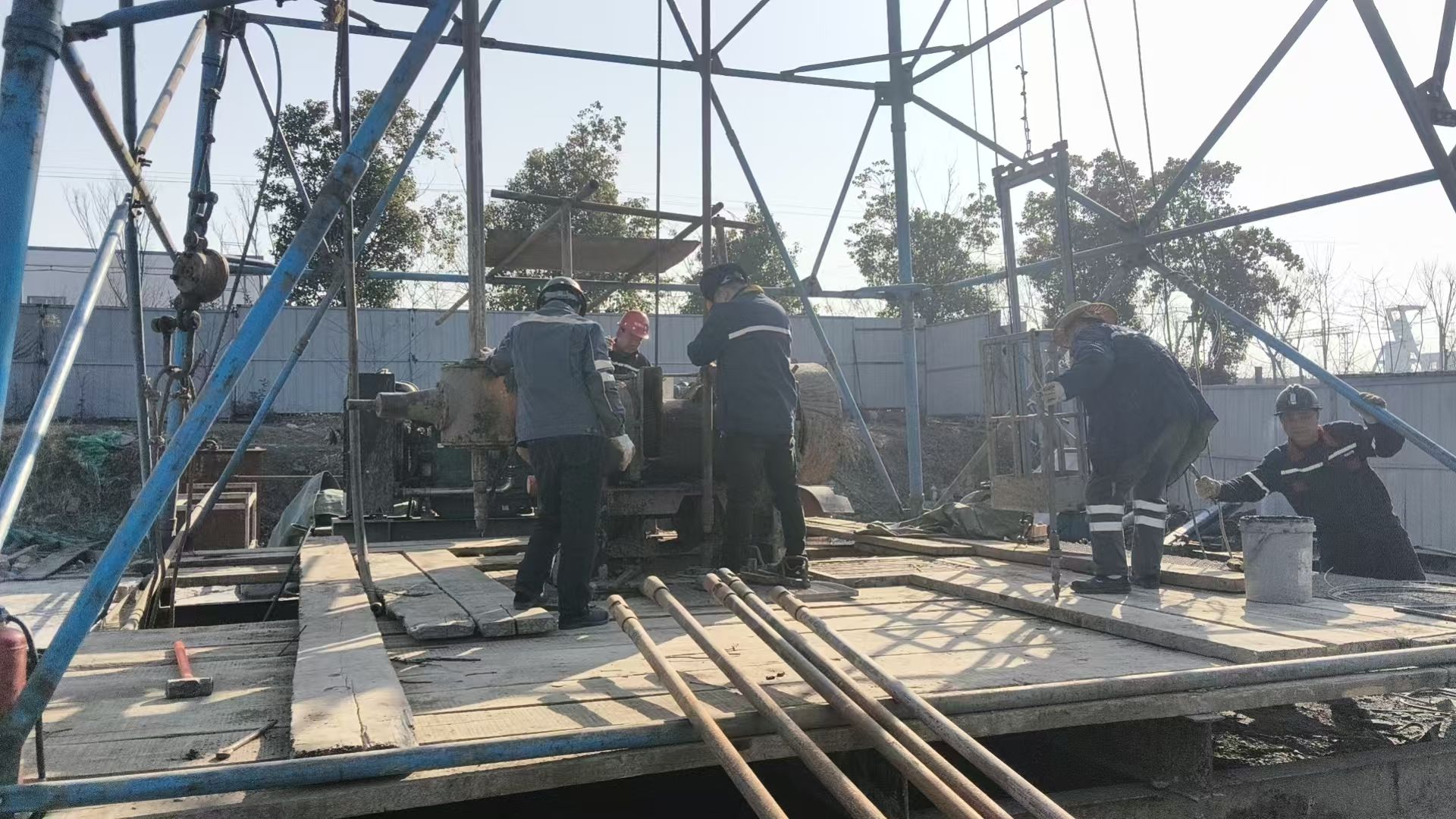 为确保施工安全及施工进度,地勘公司地面钻机项目部认真组织管技人员搜集矿区周边资料,科学合理选择施工工艺,并克服冬季寒冷天气等因素对施工的影响,抽调精干力量进入施工现场进行场地平整、稳定,设备、钻塔安装等施工工作。
