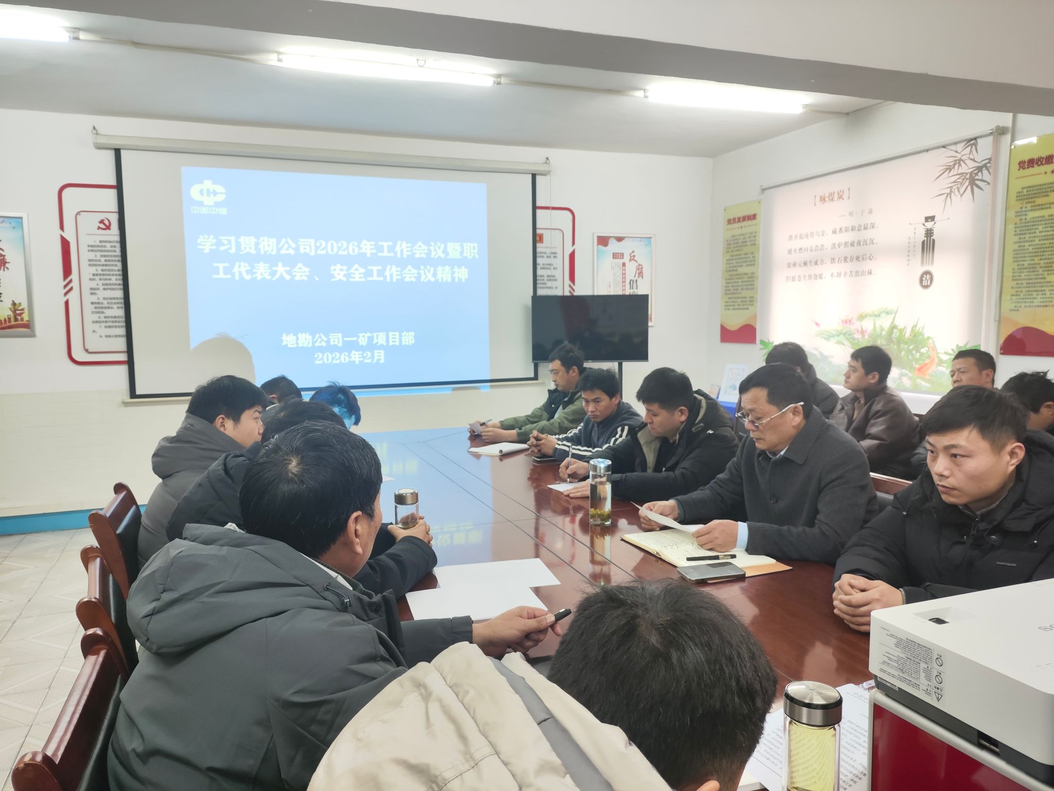 会上,支部书记传达了公司、地勘公司2026年工作会议精神,详细解读了年度发展目标、核心工作任务和关键落实举措。结合项目部工作实际,对会议的核心内容进行了拆解,并对全年重点工作做出安排部署。