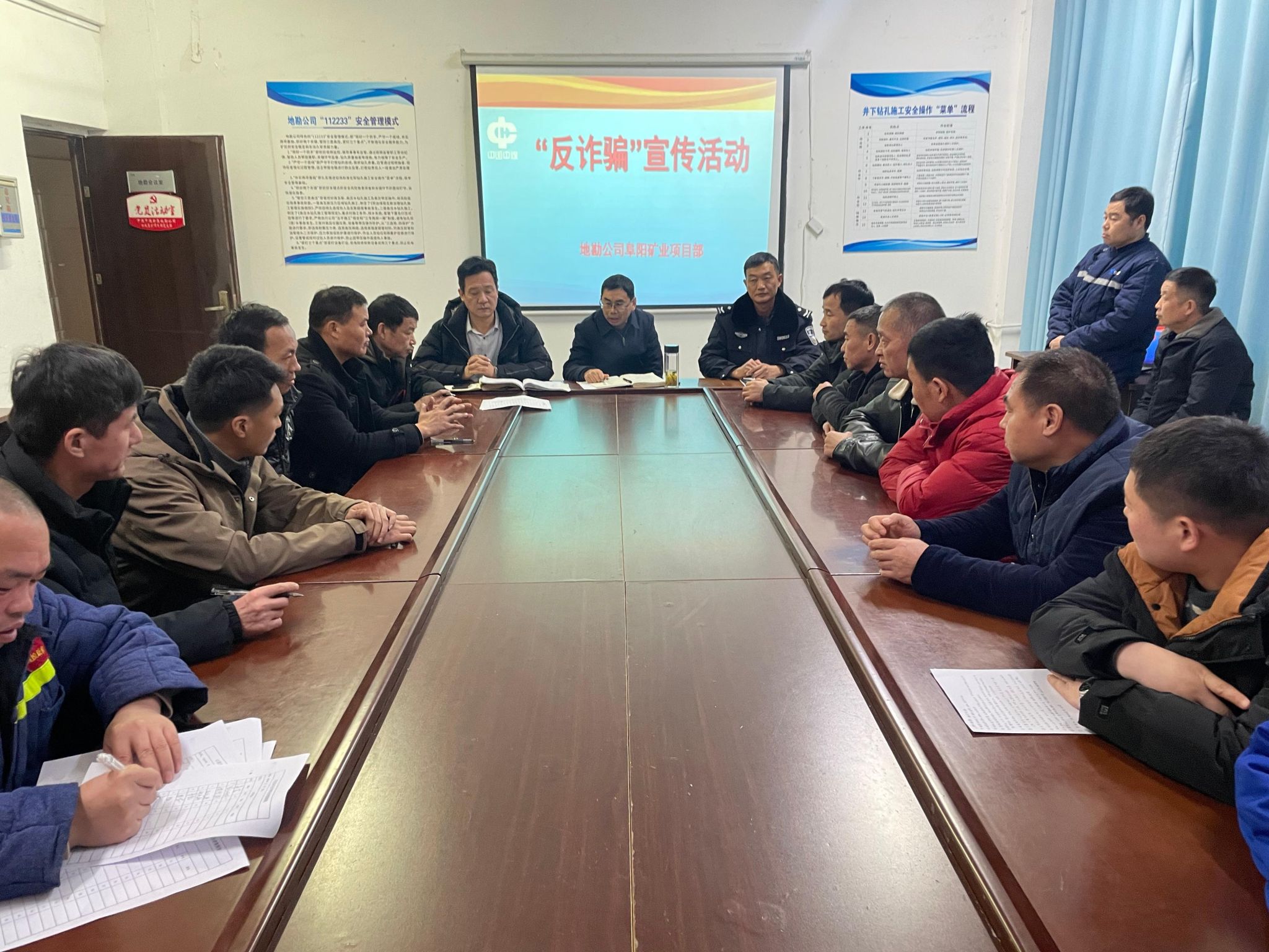 年关将至,电信网络诈骗进入高发期。为切实筑牢职工财产安全防护屏障,提升全体干部职工识诈、防诈、反诈能力。2月10日,地勘公司阜阳矿业项目部特邀矿区警员走进项目部,开展防范电信网络诈骗专题宣传活动,为广大职工送上实用的反诈“安全攻略”。