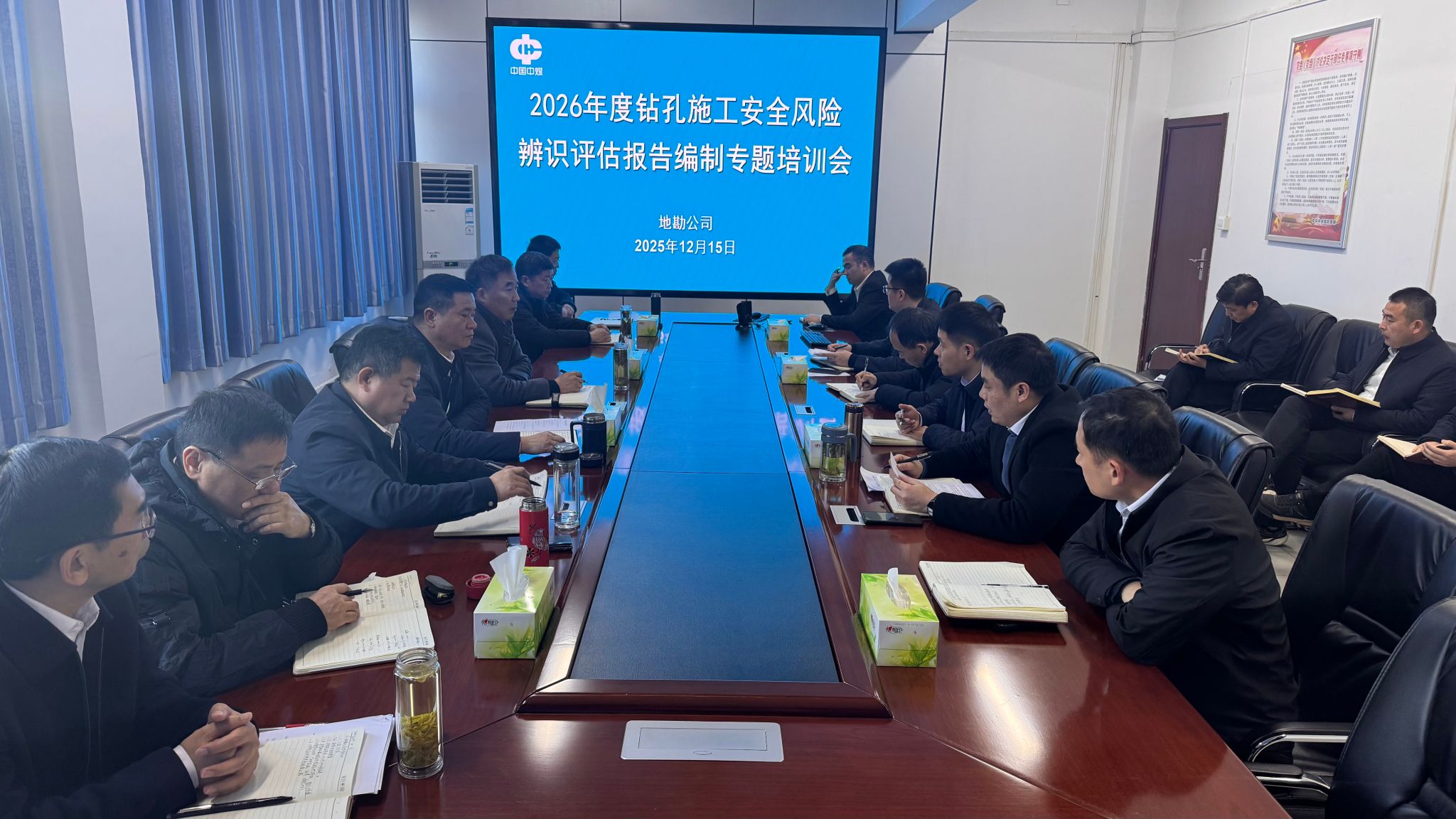 为进一步夯实安全生产基础,提升钻孔施工全过程安全风险防控能力,12月15日,地勘公司组织召开“2026年度钻孔施工安全风险辨识评估报告编制培训专题会”。