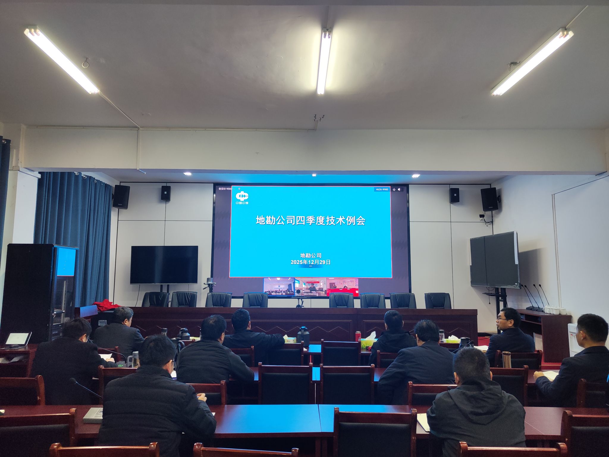 12月29日,地勘公司召开四季度技术例会,总工程师陈斌主持会议,公司副总级及以上领导、生产技术办、安全质量办全体成员及各项目部技术员共同参会。会议聚焦技术管理复盘、问题查摆与下一阶段工作部署,为后续钻孔施工质量安全高效推进筑牢基础。