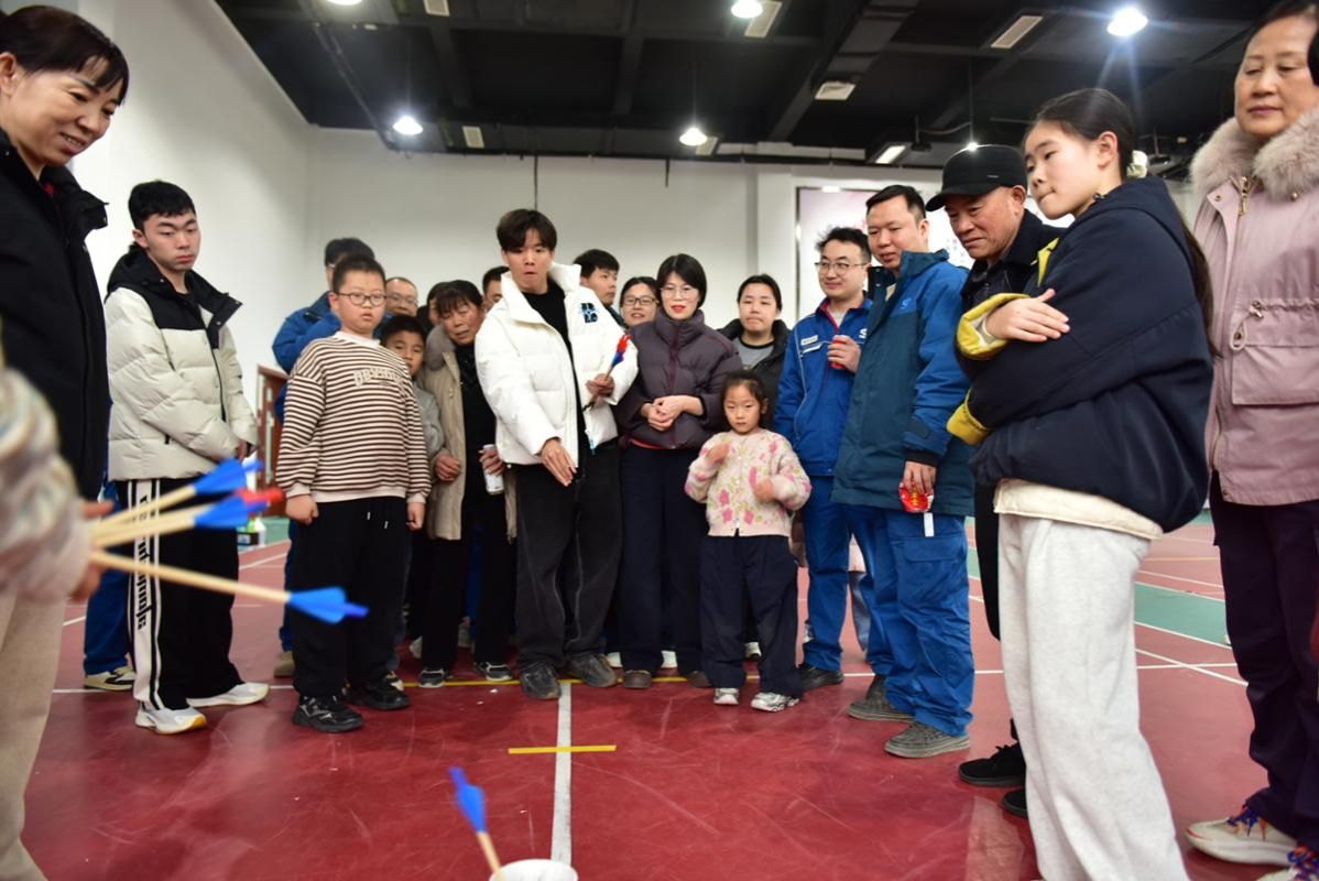 本次活动贴合年味与趣味,精心设置投壶、搭桥过河、“一马当先”多项趣味活动,兼顾传统韵味与团队协作。投壶区里,大家凝神瞄准、稳健投掷,感受传统民俗的雅致乐趣;搭桥过河项目中,职工们默契配合、稳步前行,在协作中增进情谊;“一马当先”环节斗志昂扬,大家奋勇争先、比拼速度,尽显昂扬向上的精神风貌。赛场上,加油声、喝彩声、欢笑声此起彼伏,每个人脸上都洋溢着喜悦,充分展现了利辛发电职工团结奋进、乐观向上的良好风貌。