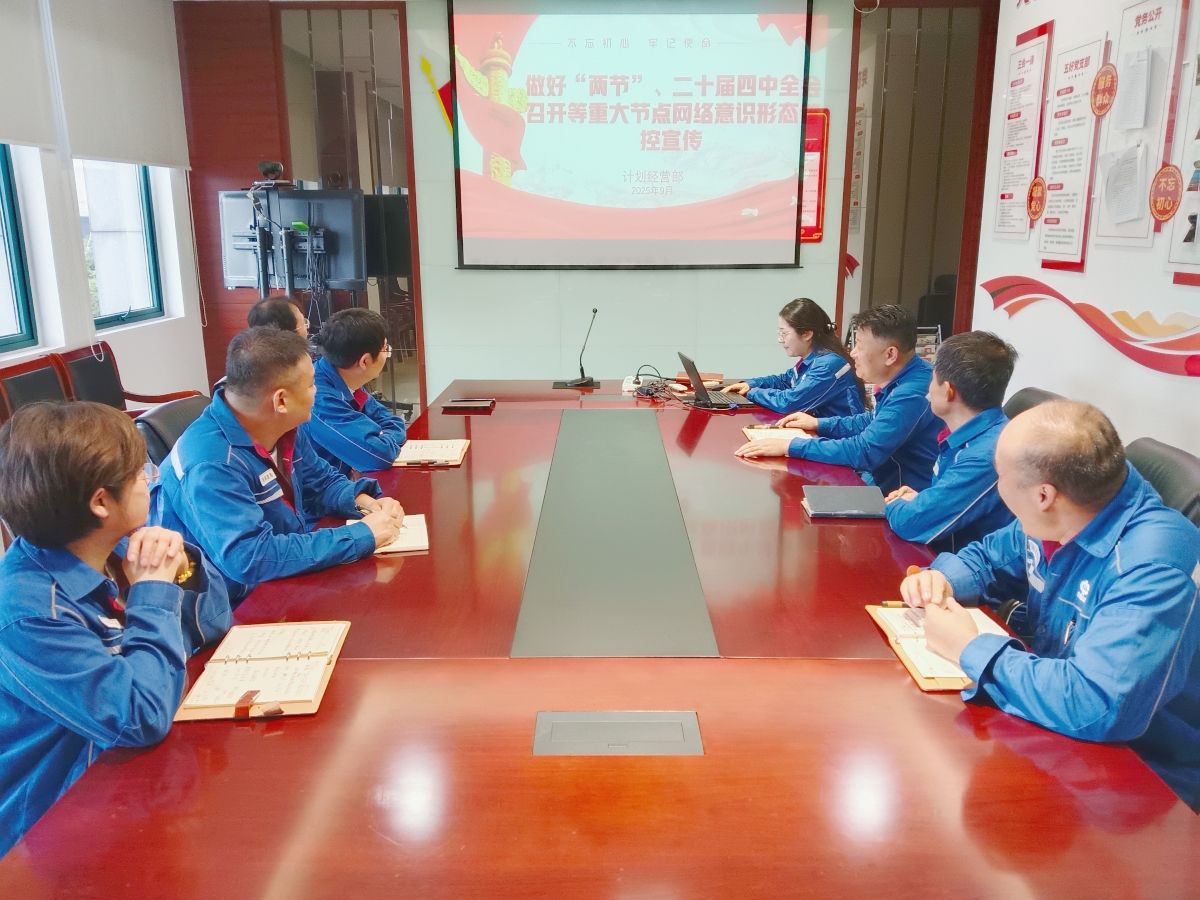 利辛发电计划经营部聚焦重要敏感时期网络风险防范,加强各类工作群组、网络平台信息发布审核与舆情监测,严禁传播不实言论和敏感信息。组织网络安全自查,强化数据安全管理,增强全员网络防护意识,确保网络空间意识形态安全可控。