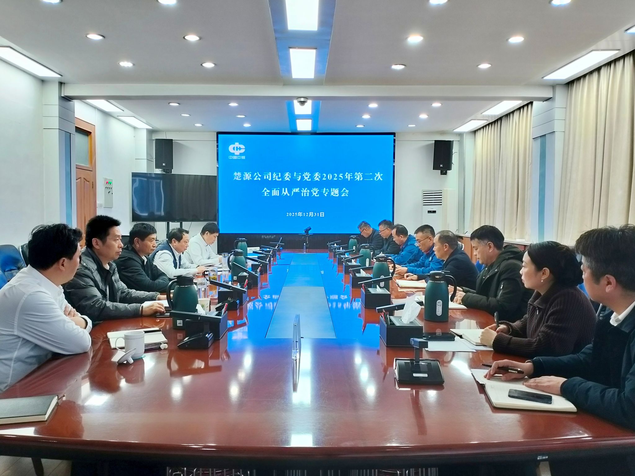 12月31日,楚源公司召开纪委与党委2025年第二次全面从严治党专题会。楚源公司党委书记、副总经理周伟主持会议,领导班子成员潘景宝、程晋江、齐家根、许修龙参加,总师、总监和机关科室负责人列席。
