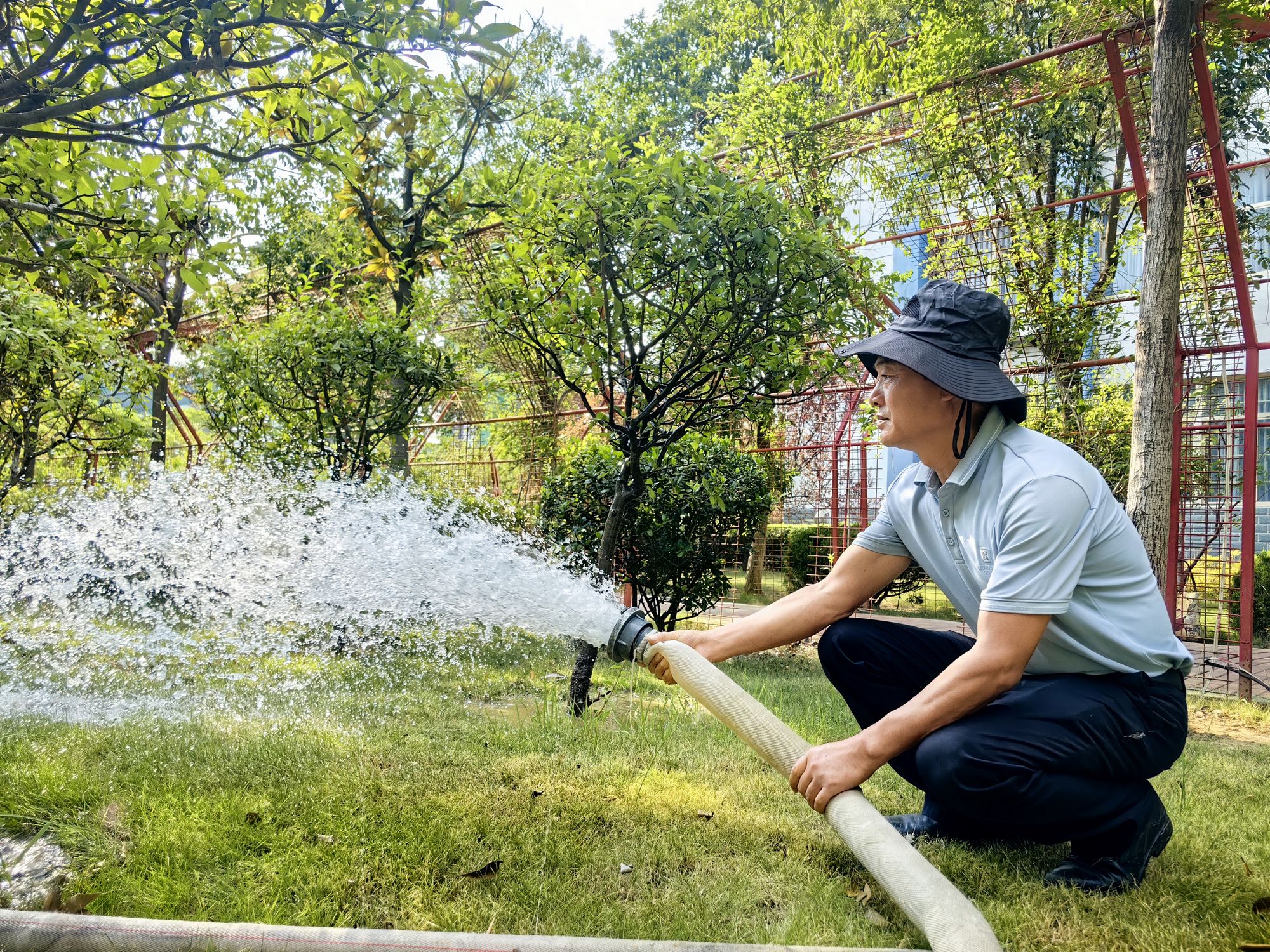 以“两山”为景,绘就绿色发展画卷。后勤园林队在践行“两山”理念的过程中,先将生态优先作为基本原则,致力于矿区的绿化工作。根据各个矿区及办公园区的地形、地貌等生态环境特点,制定详细的绿化方案。在种植过程中,为确保树木的成活率和生长效果,选择适合当地气候和土壤条件的树木绿植。建立完善绿化管理制度,明确各项养护工作的责任人和具体要求,定期对树木花草进行修剪、浇水、施肥和病虫害防治等工作,确保绿化成果得到长期保持。同时,对园林修剪产生的枝叶等废弃物的处理中,通过堆肥等方式将其转化为有机肥料,并加强对园林灌溉系统的管理,采用喷灌等节水灌溉方式,减少对水资源的浪费。