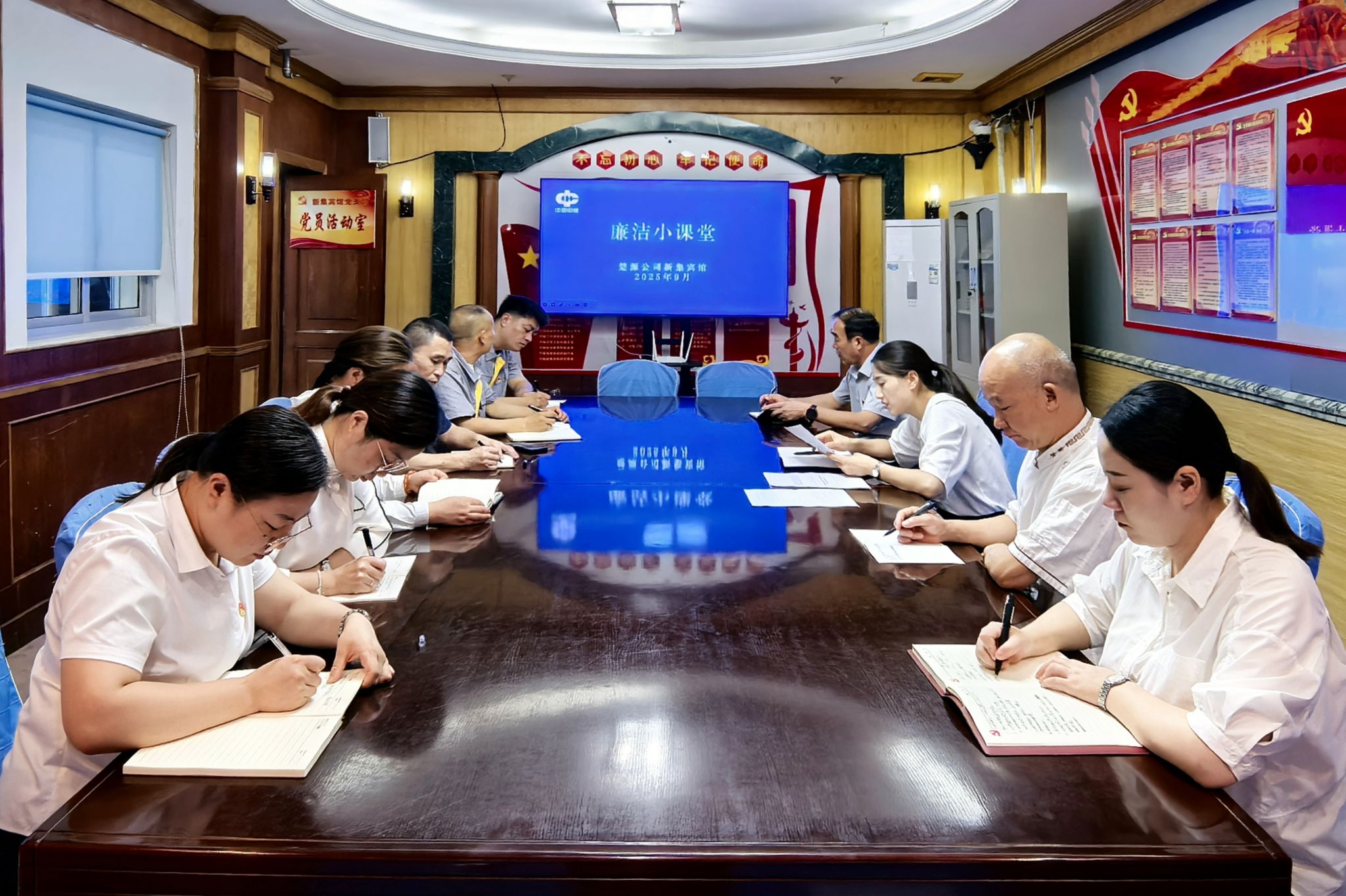 为进一步强化党员的廉洁自律意识,筑牢拒腐防变的思想堤坝。9月15日,楚源公司新集宾馆组织开展廉洁小课堂。