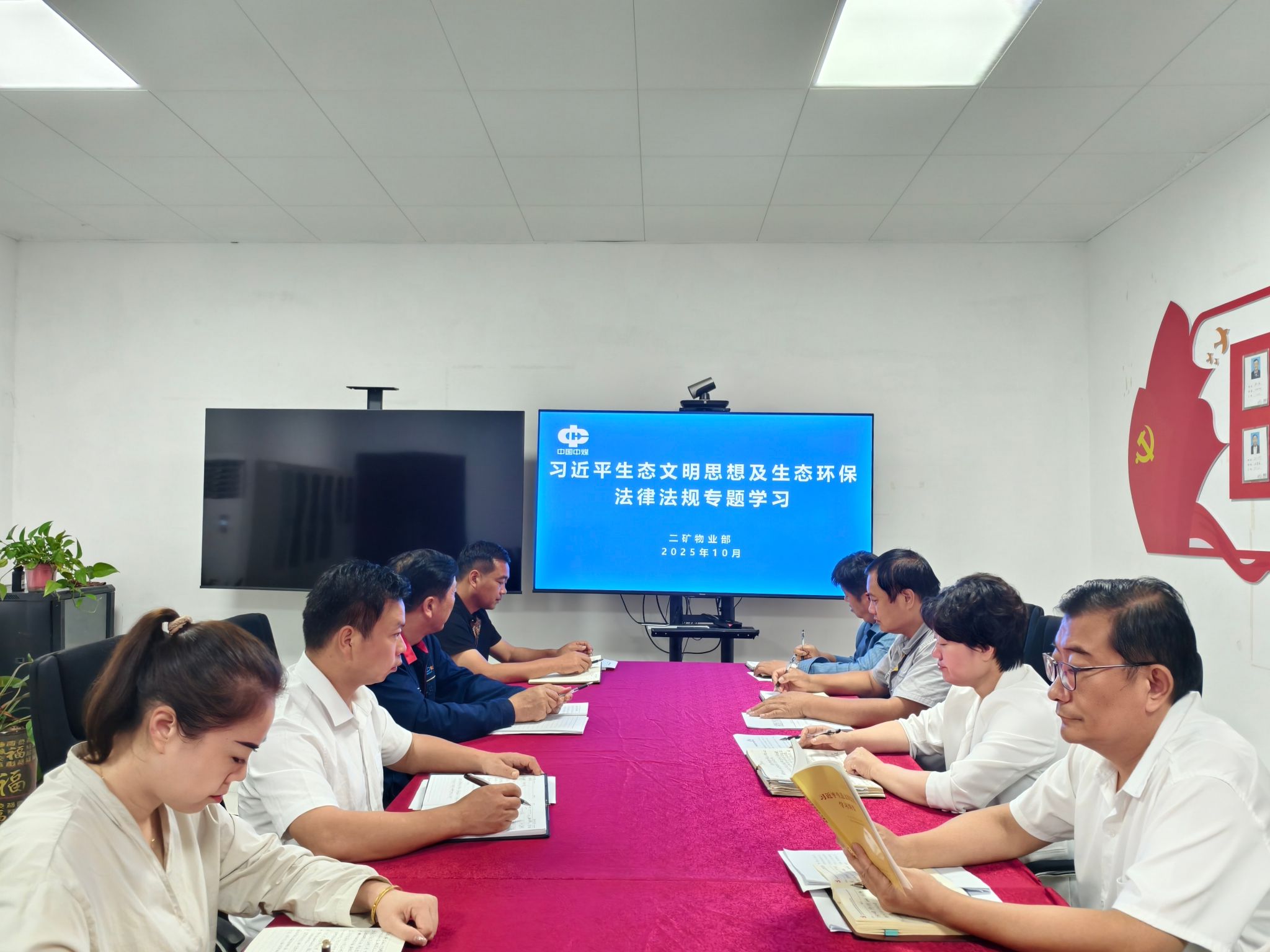 为深入学习贯彻习近平生态文明思想,全面落实习近平总书记关于生态保护的重要讲话和指示批示精神,进一步增强生态环境保护意识,10月9日,楚源公司二矿物业部组织干部职工开展习近平生态文明思想及生态环保相关法律法规专题学习。
