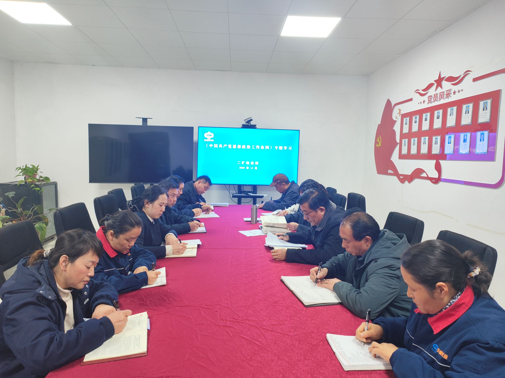 为深入贯彻落实新时代党建工作要求,切实加强和改进思想政治工作。12月15日,楚源公司二矿物业部党支部组织党员干部深入学习宣传贯彻《中国共产党思想政治工作条例》,推动支部思想政治工作制度化、规范化、科学化,为建设坚强战斗堡垒提供有力思想保障和精神动力。