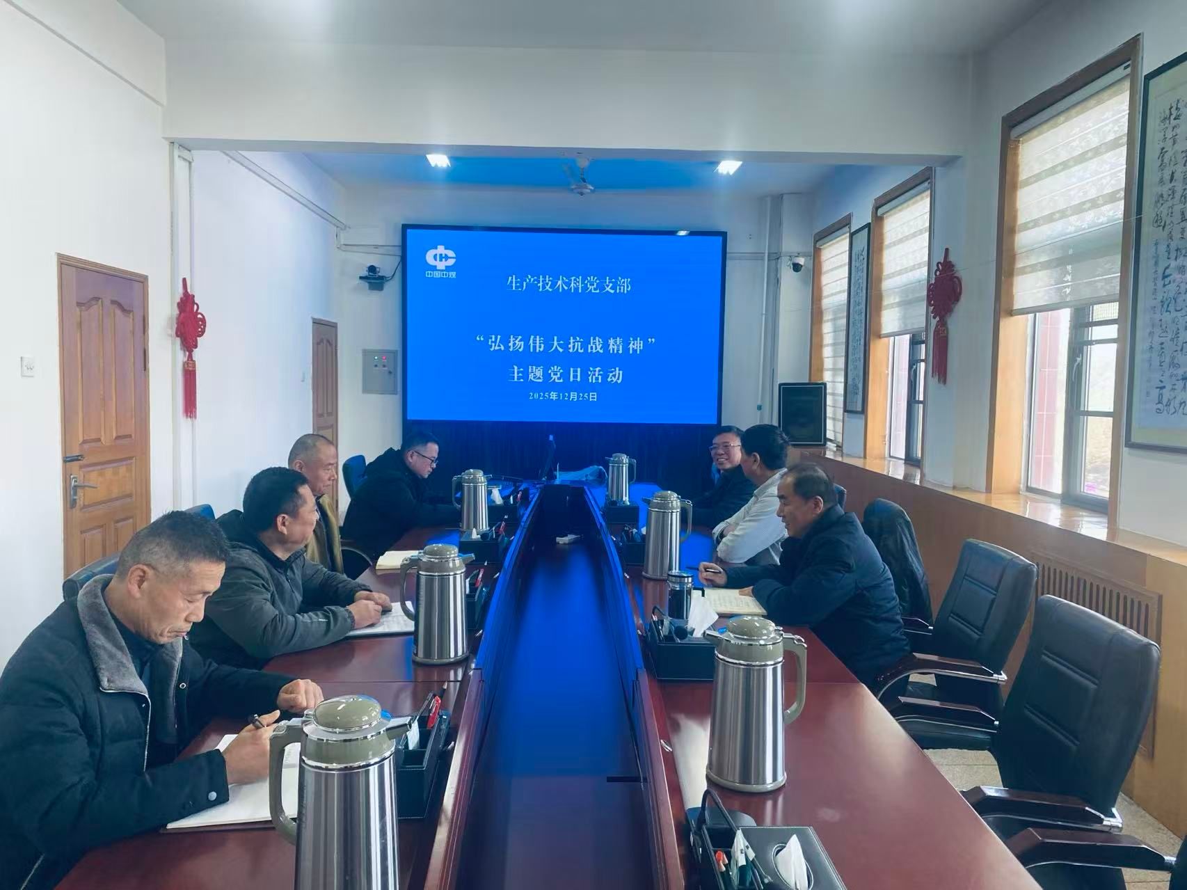 2025年是中国人民抗日战争暨世界反法西斯战争胜利80周年。中国人民抗日战争暨世界反法西斯战争胜利的重要组成部分和东方主战场,是正义和邪恶、光明和黑暗、进步和反动的大决战。面对侵略者,中华儿女不屈不挠、浴血奋战,彻底打败了日本军国主义侵略者,捍卫了中华民族5000多年发展的文明成果,捍卫了人类和平事业,铸就了战争史上的奇观、中华民族的壮举,孕育出伟大抗战精神。12月15日,楚源公司生产技术科党支部组织全体党员开展“弘扬伟大抗战精神”主题党日活动。