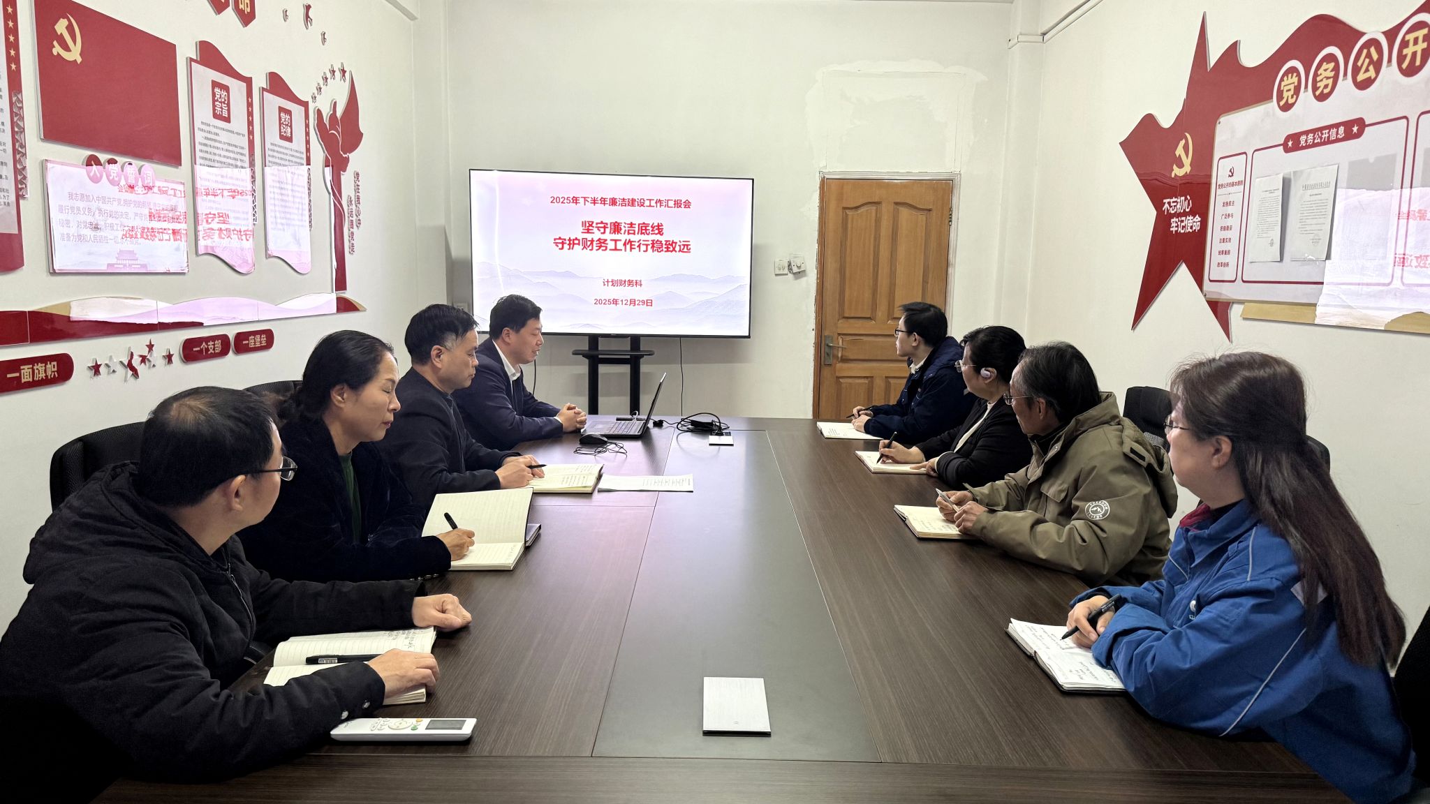 会上,计划财务科负责人汇报了本科室下半年廉洁风险防控落实情况,重点围绕年度预算、资金管理、流程管控等核心环节,详细阐述了廉洁建设工作的开展情况。过去一年,计划财务科以财务精细化管理筑牢发展根基,通过制度完善、教育深化、监督强化等举措,构建起“不敢腐、不能腐、不想腐”的长效机制,为部门高质量发展提供了坚实的纪律保障。