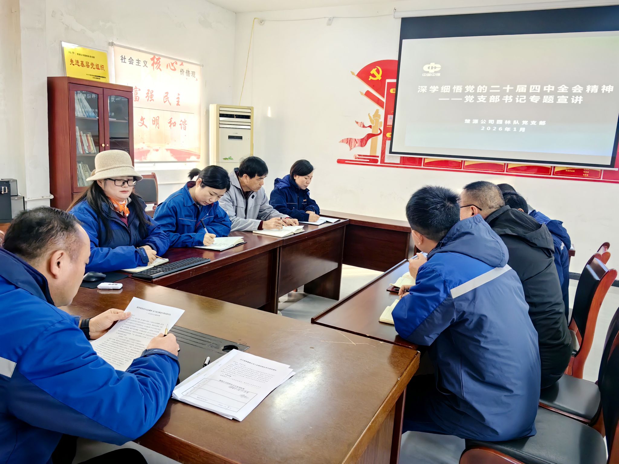 为进一步统一思想、凝聚共识,引导教育党员自觉把思想和行动统一到党中央决策部署上来,推动全会精神落地生根,1月12日,楚源公司园林队党支部以党员活动日为契机,开展党的二十届四中全会精神专题宣讲。