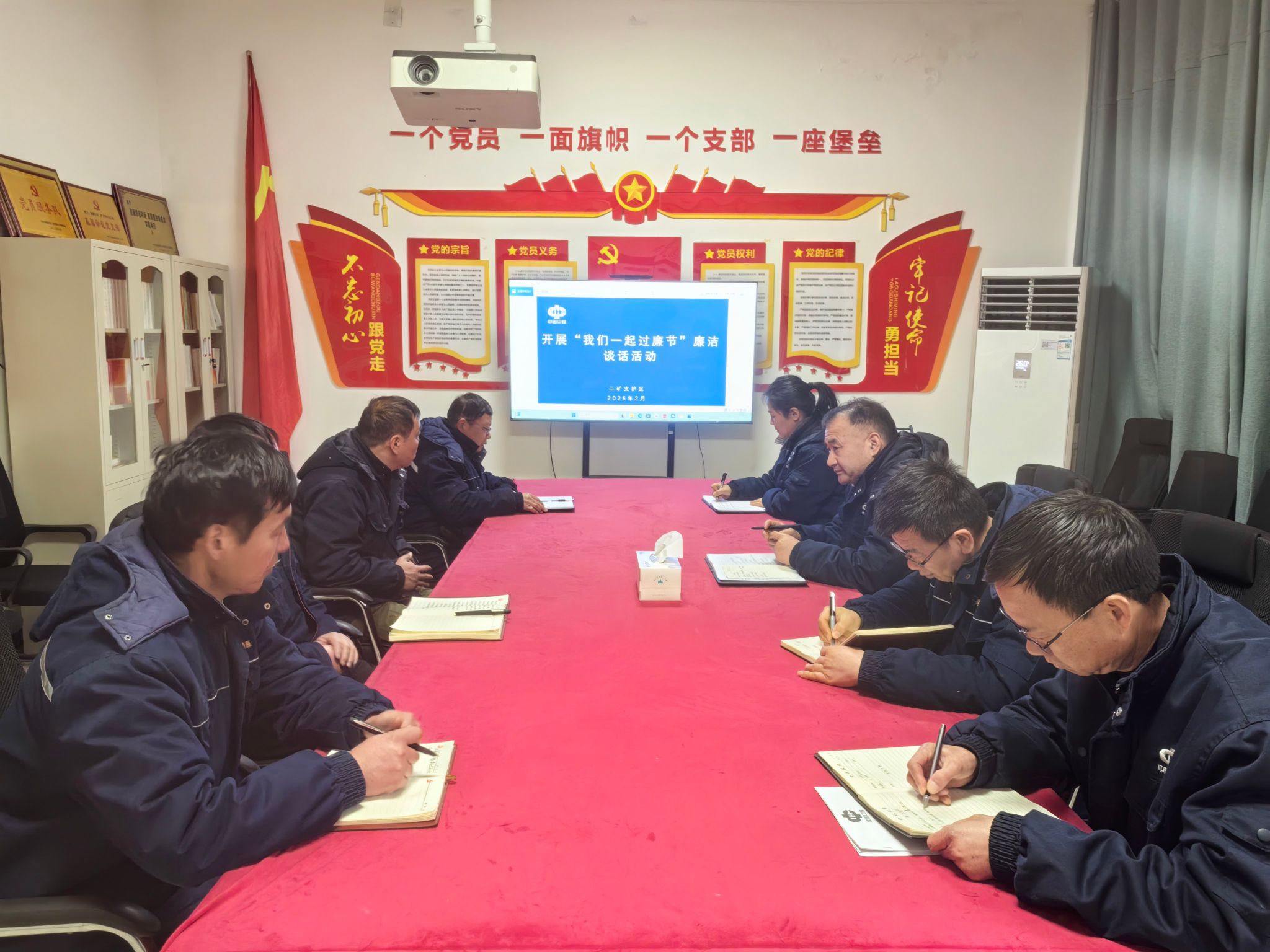 为深入贯彻落实中央八项规定及其实施细则精神,筑牢党员干部拒腐防变思想防线,把年关打造成“廉关”,2月10日,楚源公司二矿支护区党支部以“我们一起过廉节”为主题,组织开展节前集体廉洁谈话活动,党员干部及关键岗位、敏感岗位、风险岗位人员参加,共同敲响廉洁警钟,携手营造风清气正的节日氛围。
