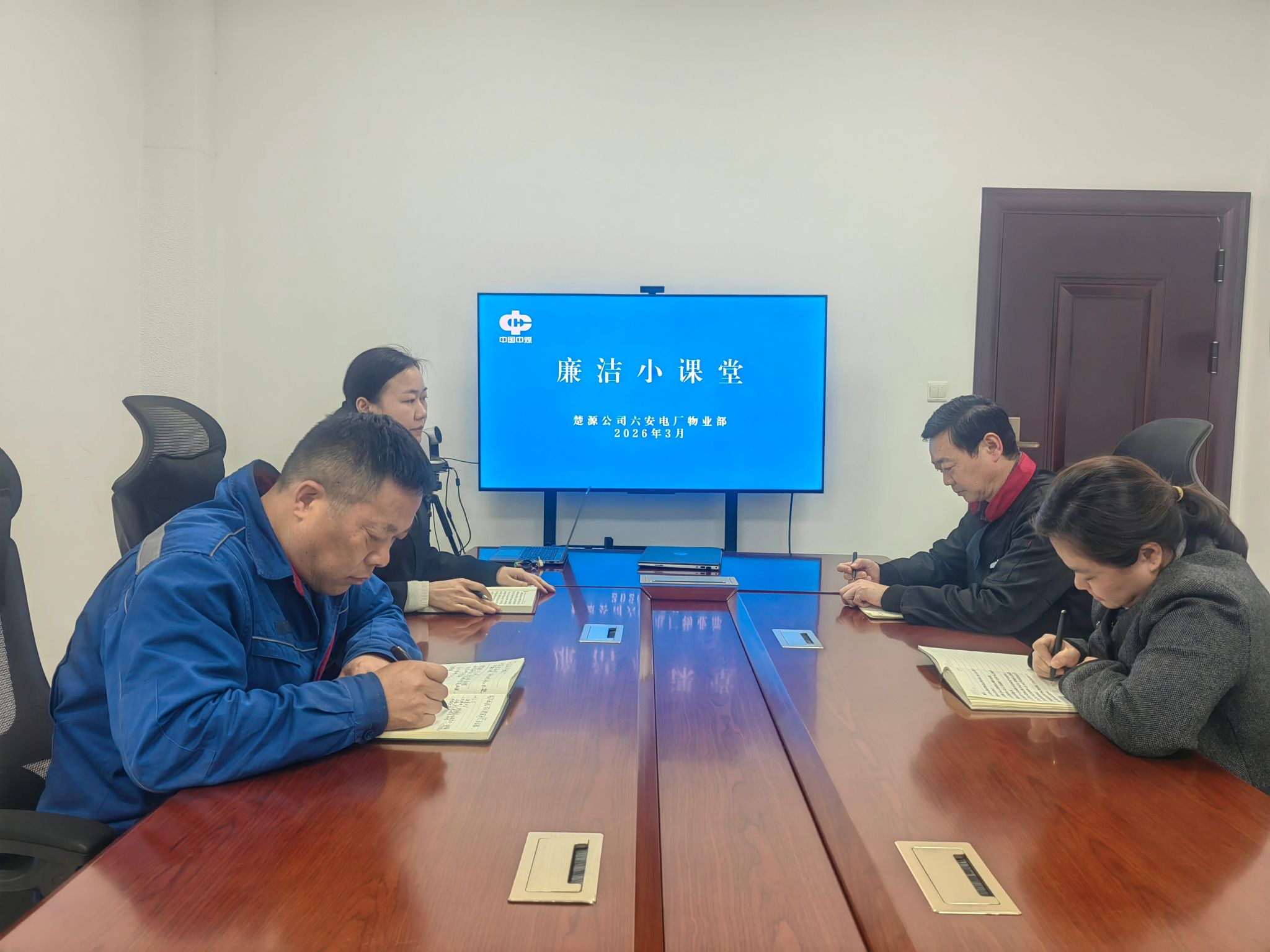 为持续深化党风廉政建设,切实强化党员干部廉洁自律意识,筑牢拒腐防变思想防线。3月18日,楚源公司六安电厂物业部党支部组织开展“学廉洁知识、守纪律底线、强责任担当”主题廉洁小课堂活动,推动廉洁教育入脑入心、落地见效。