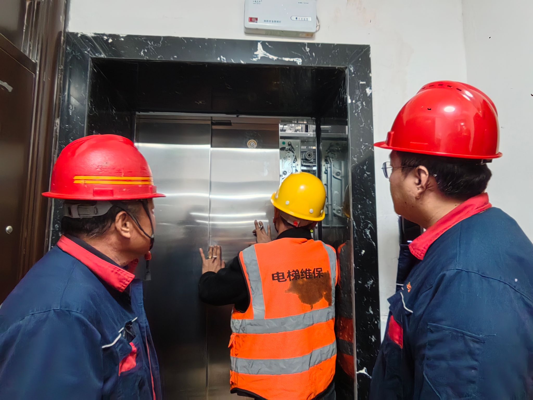 为加强应急安全管理,保障特种设备运行安全,检验和提高突发电梯事故时的应急准备、组织协调和应急响应能力。10月30日,楚源公司新集物业部组织水电工、宿舍管理员在单身宿舍7号楼开展电梯事故应急演练。