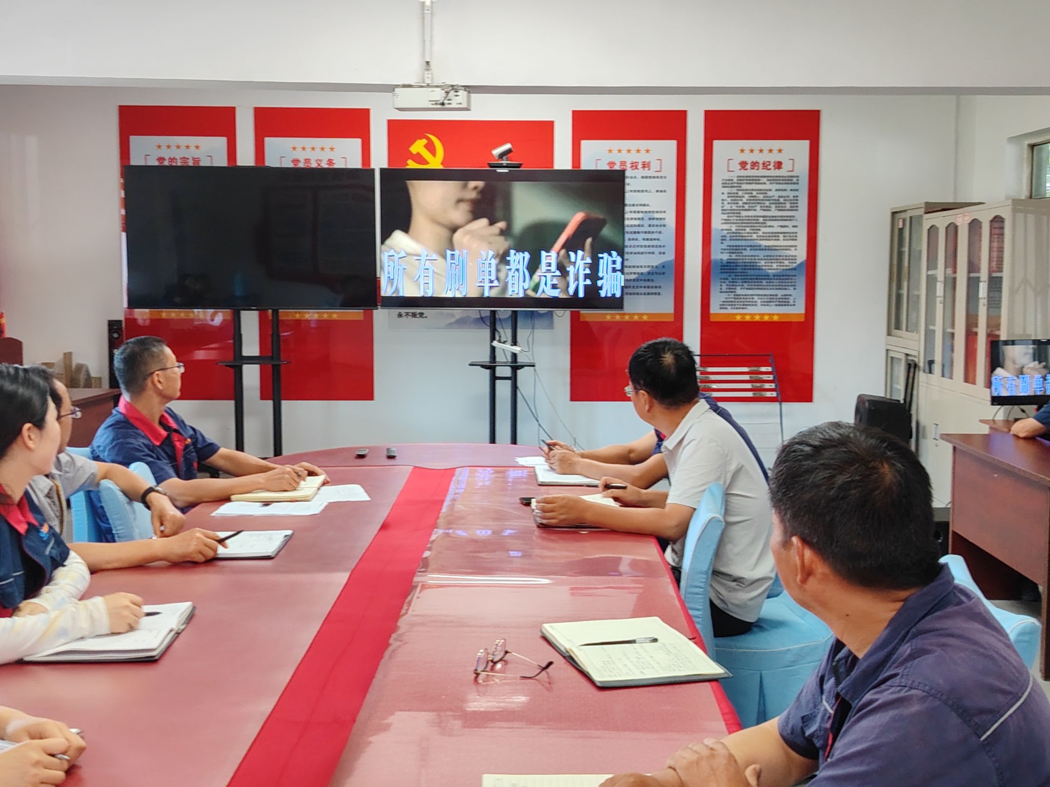 会上,与会人员还集体观看了《屏幕共享 小心被骗》《人生预告》等反诈宣传视频,会议要求,车间各班组要利用班前会、微信工作群等多种形式,进一步提高宣传的覆盖面和影响力,认真向全体职工进行防电诈知识的宣传,织密防范网络,增强职工的防骗意识。
