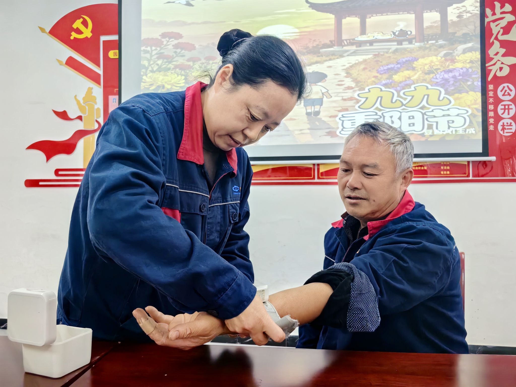 活动主要通过志愿宣讲、关爱健康测血压、 绿色健康健步行等形式开展,志愿者向大家介绍重阳节文化内涵、习俗等,从最初的登高祈福、赏菊饮酒,到如今的敬老爱老,重阳节承载着中华民族对生命的敬畏、对自然的感恩,以及对长辈的深深敬意。向大家发出倡议,多陪伴家中的老人聊聊天、散散步,倾听他们的故事和回忆,让他们感受到家人的温暖;关心他们的身心健康,传承孝道,让重阳节的温暖传递到每一位老人的心中。同时,为职工普及健康知识、测血压,对有基础病年龄较大的职工,提醒按时服药,健康饮食,参加适合的健身活动。在健步行活动中,一路上,大家迎着清新空气,欣赏着沿途优美景致,步履轻快、欢声笑语不断,用脚步丈量秋日美景,以行动践行健康理念,现场洋溢着浓厚的运动氛围与活力。