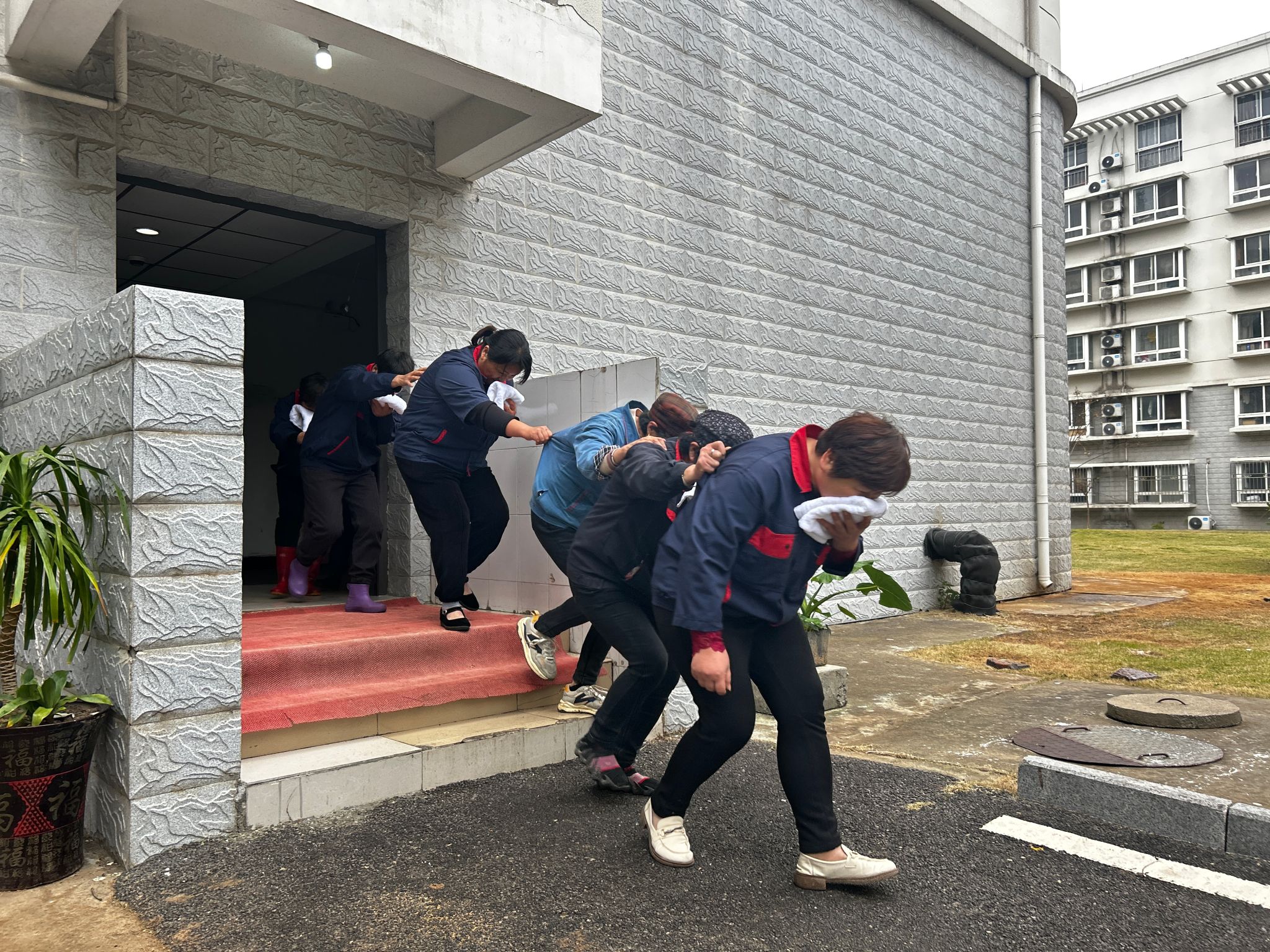 演练聚焦“火灾应急处置、人员疏散引导、灭火器材实操”三大关键环节开展。随着演练指令下达,模拟情景设定为宿舍2号楼因违规使用大功率电器引发火灾,值班人员第一时间确认火情,迅速上报。总指挥当即启动应急预案,组织各应急小组有序行动。被困职工在疏散人员引导下用湿毛巾捂住口鼻,弯腰低姿沿指定路线撤离至楼外安全区域;灭火行动组切断楼层电源后,与矿保卫科协同作战,利用消火栓、灭火器材全力控制火势;医疗救护组提前在安全区准备医疗药箱,随时为受伤人员提供临时救治。整个演练过程紧张有序,所有人员均在规定时间内安全疏散。演练结束后,指挥组现场点评演练成效与不足。该物业部负责人表示,此次演练,既是对日常消防训练成果的检验,更是对职工消防安全意识的再强化。