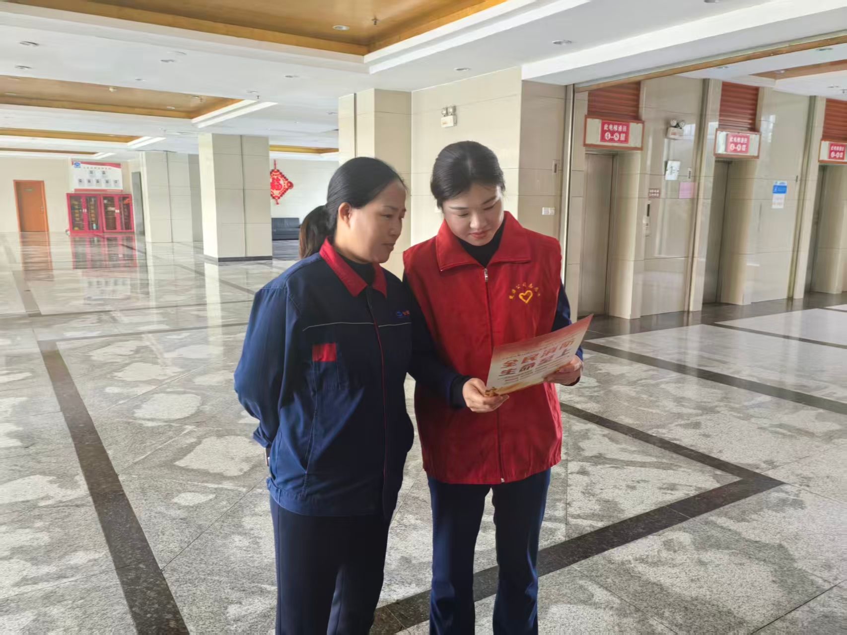 活动现场,身着醒目红马甲的志愿者们步履不停。志愿者们穿梭在公寓楼的楼道、职工房间、消防器材存放点及休息区,一边向同事发放宣传资料,一边结合单页内容细致讲解火灾预防、初期扑救、逃生自救等核心知识。为让宣传实效落地,志愿者们不仅带头学习各类消防技能,还逐一排查楼内消火栓、灭火器等器材的完好情况,确保应急设备随时可用。