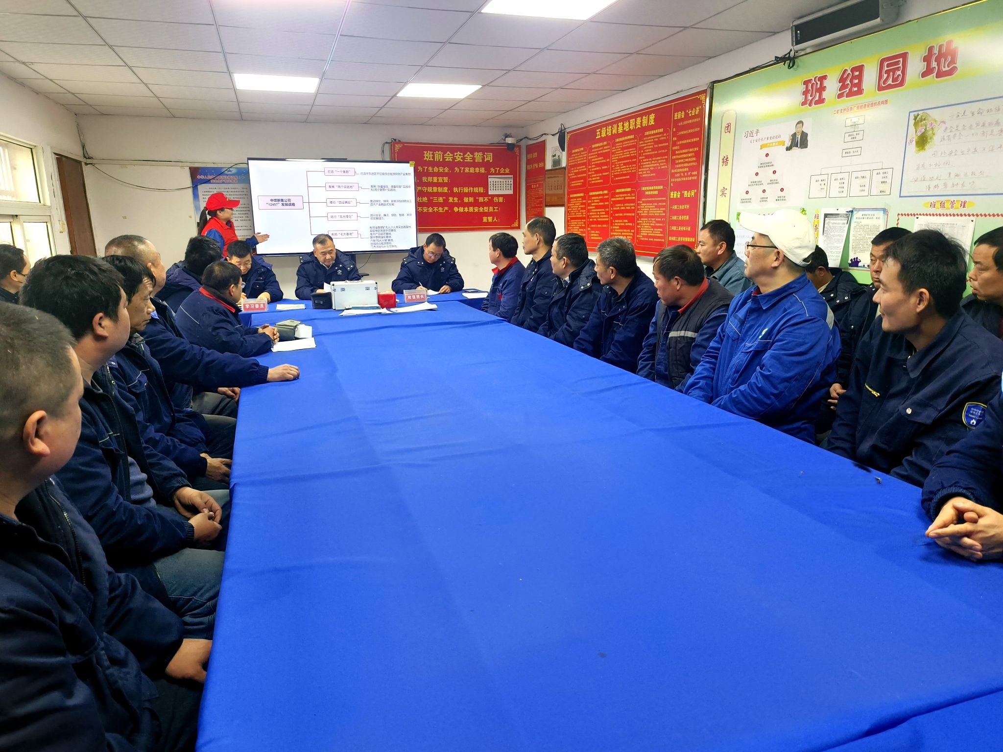 该区队负责人要求各班组利用班前班后会、安全例会等,将“12457”发展战略,贯彻到每位职工。充分利用“新集能源APP”等载体,及时掌握动态,深化理解认识,积极建言献策。将“五大理念”嵌入工作各环节,严守安全底线,坚持廉洁从业,践行绿色生产;探索智能化提升等。