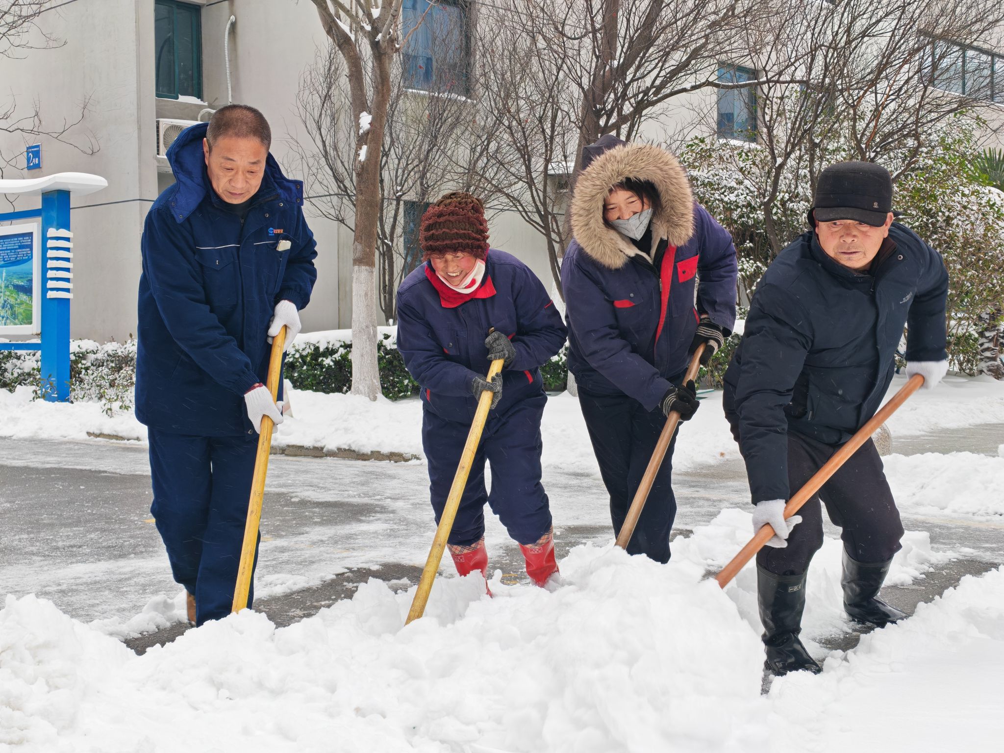 在除雪现场,各班组成员分工明确、配合默契。有的手持着铁锹,奋力铲除道路上的积雪;有的拿着扫帚,仔细清扫残留的雪渣。尽管寒风凛冽,大家的手中动作一刻也没有停歇。在除雪过程中,大家还相互关心、相互帮助,遇到工具不够用时,会主动将自己的工具借给他人;看到有人体力不支时,会立刻上前帮忙替换。这种团结协作的精神,让除雪工作进展得十分顺利。