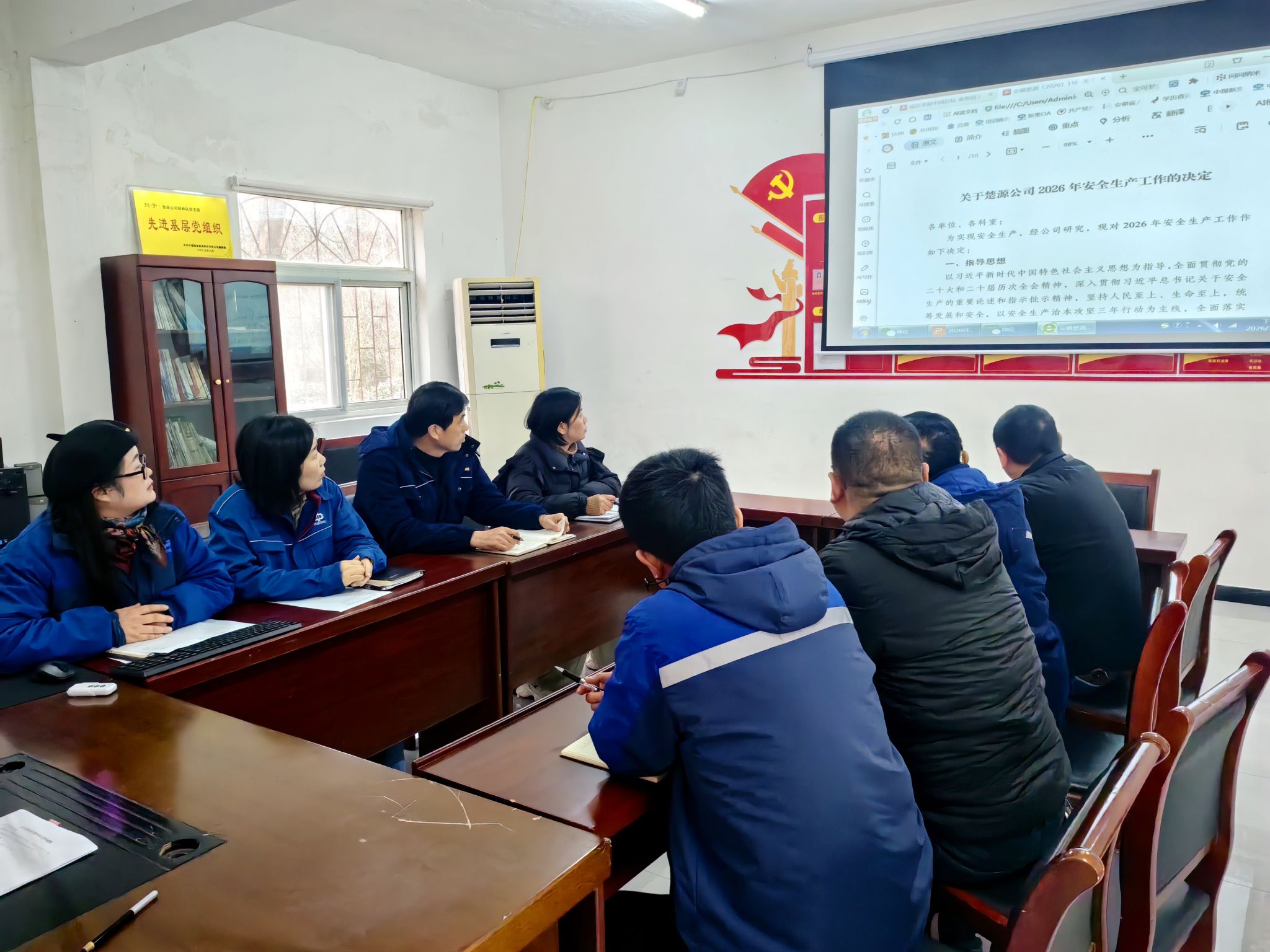 第一时间召开专题部署会,结合单位实际梳理重点内容,组织学习宣贯。利用安全例会、班前会、微信群、宣传栏等多种形式,对一号文的安全思路、安全目标和重点任务以及安全处罚管理办法等内容开展专题学习,确保文件精神直达班组、浸润岗位,引导职工将安全要求内化于心、外化于行。专题学习中,该单位党支部书记对公司安全一号文进行逐一宣贯和深入解读,让职工清晰了解把握上级要求与工作方向。