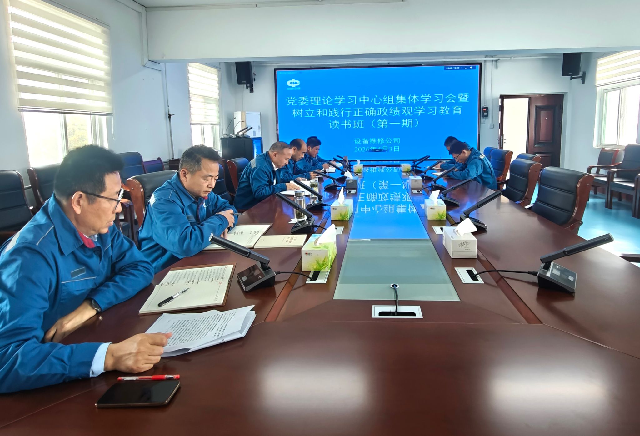 4月3日,设备维修公司举办党委理论学习中心组(扩大)学习会暨树立和践行正确政绩观学习教育读书班(第一期)。该公司党委书记周传智主持会议。党委副书记、经理方向明等党委班子成员和各职能科室负责人参加。