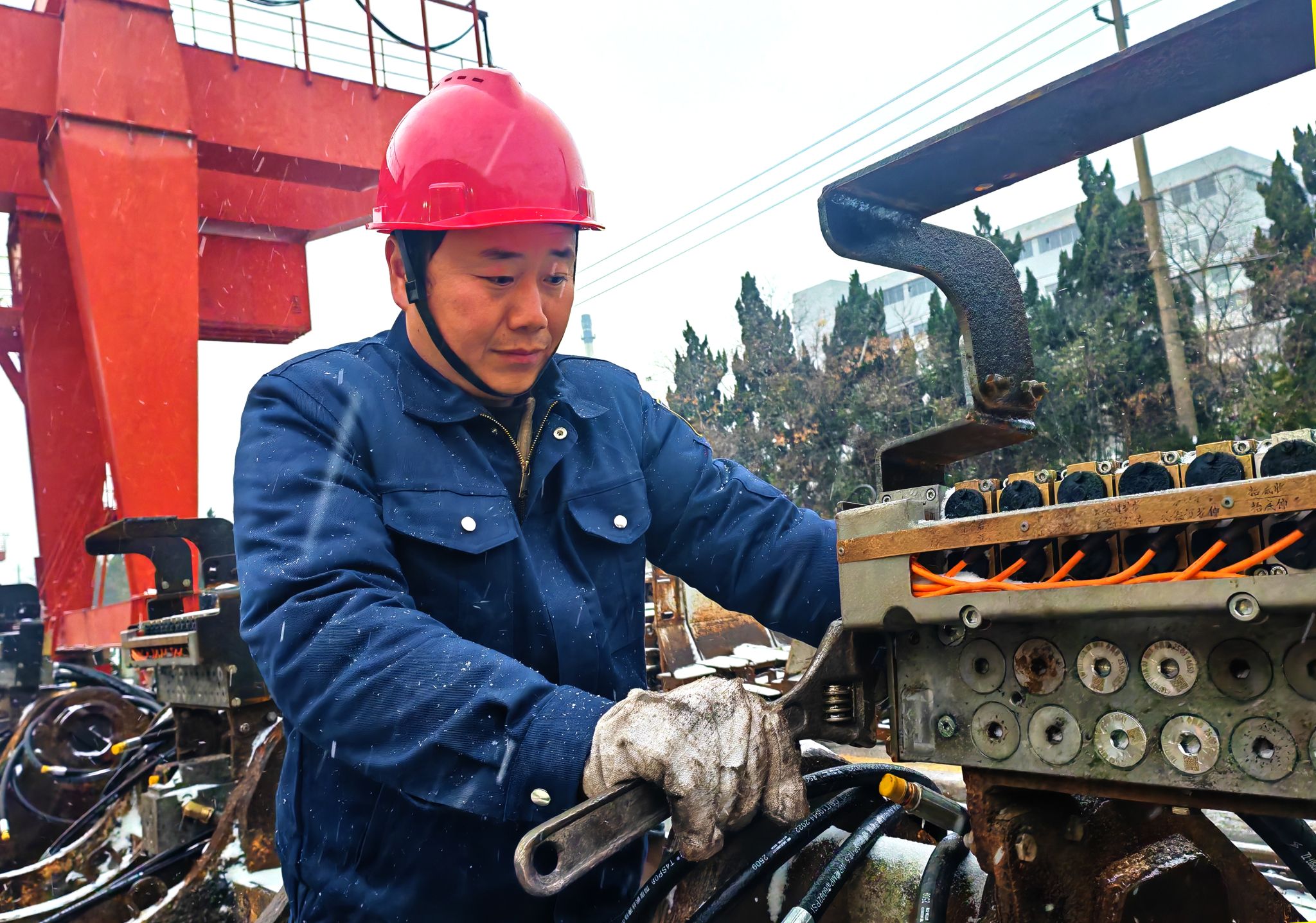 寒潮席卷,大地被冰雪裹挟。在设备维修公司各综采设备检修场地,依然是热火朝天。看!一群矿山汉子顶风冒雪,在天寒地冻中与时间赛跑、与设备较劲。冰碴凝在眉睫,冻红的双手却牢牢攥紧扳手;寒风穿透棉衣,铿锵的号子声却盖过了风雪呼啸。