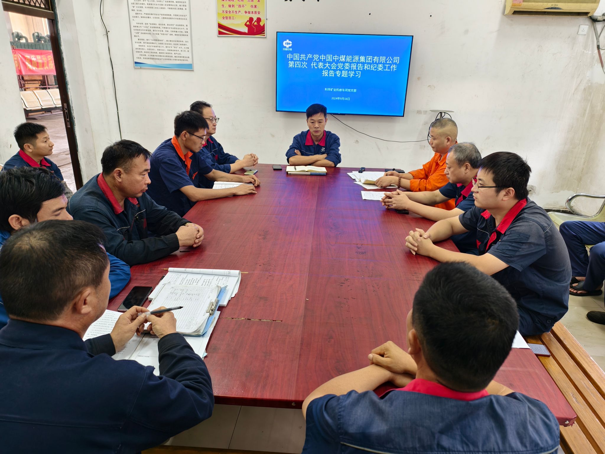 9月16日,设备维修公司利辛矿业机修车间党支部召开专题学习会,集中学习中国共产党中国中煤能源集团有限公司第四次代表大会党委报告和纪委工作报告,车间全体党员群众参加。
