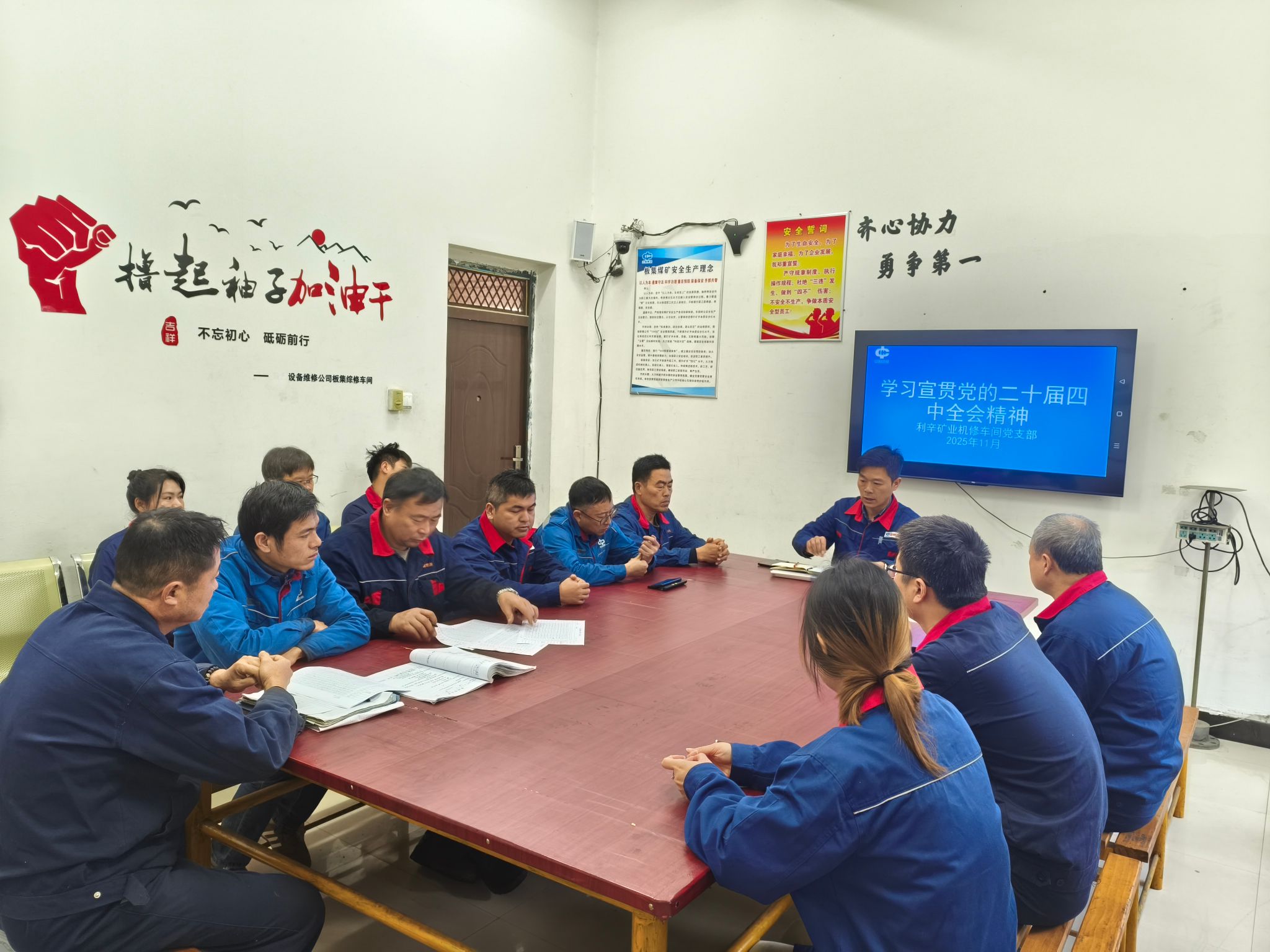 党的二十届四中全会召开后,设备维修公司利辛矿业机修车间迅速行动,以“学深悟透、知行合一”为目标,通过深入全面学习。推动全会精神在车间班组落地生根,让“高质量发展”“新质生产力”等核心要求转化为职工攻坚克难的内生动力,在车间上下掀起“学精神、践初心”的浓厚氛围。