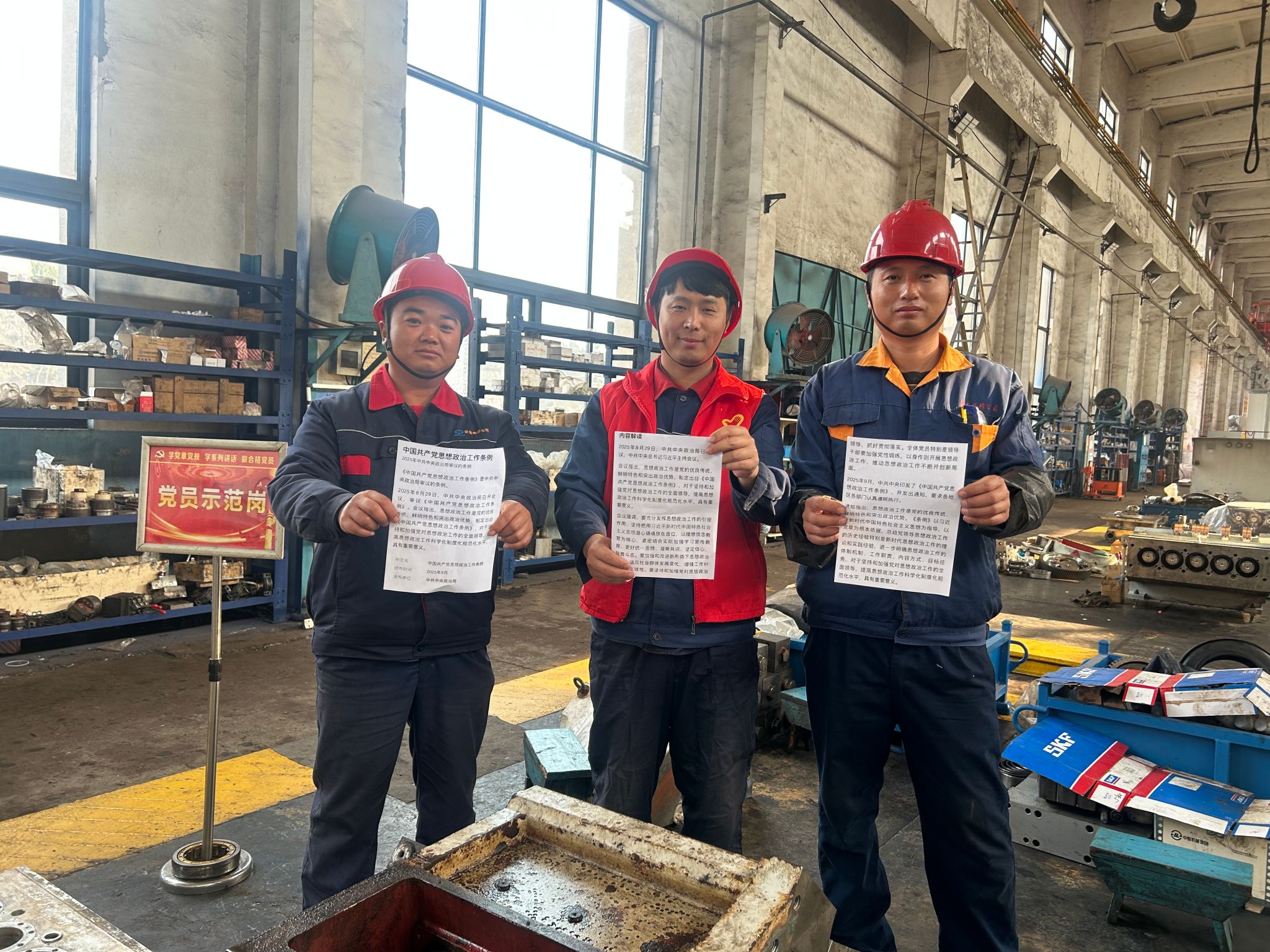 设立“党员示范岗”“党员责任区”,开展“学条例、保生产、践初心”实践活动,党员带头参与设备巡检、技术攻关,将“人民至上”的理念融入每一项工作;主动帮助解决群众急难愁盼问题,凝聚职工群众发展合力。